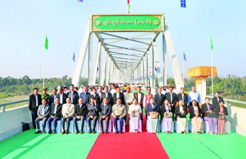 - ပြည်ထောင်စုသမ္မတမြန်မာနိုင်ငံတော် ယာယီသမ္မတ နိုင်ငံတော်လုံခြုံရေးနှင့်အေးချမ်းသာယာရေးကော်မရှင်ဥက္ကဋ္ဌ ဗိုလ်ချုပ်မှူးကြီး မင်းအောင်လှိုင် ချင်းတွင်းတံတား (ထမံသီ) ဖွင့်ပွဲသို့ တက်ရောက်ချီးမြှင့်