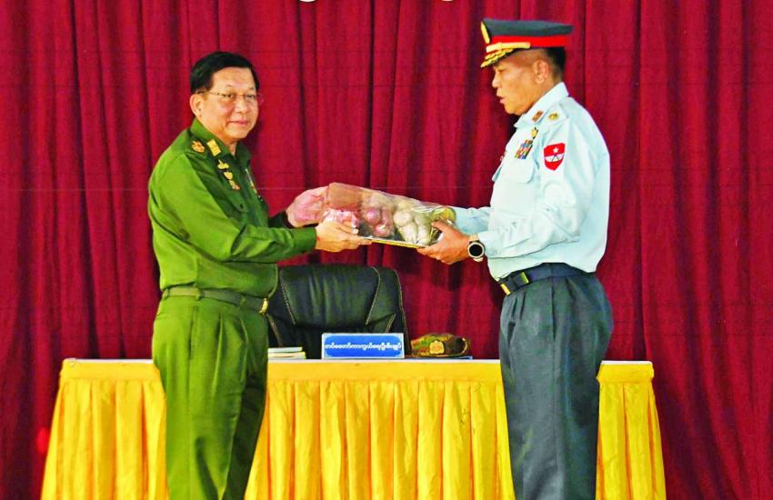 - နိုင်ငံတော်စီမံအုပ်ချုပ်ရေးကောင်စီဥက္ကဋ္ဌ တပ်မတော်ကာကွယ်ရေးဦးစီးချုပ် ဗိုလ်ချုပ်မှူးကြီး မင်းအောင်လှိုင် တြိဂံဒေသတိုင်းစစ်ဌာနချုပ် ကျိုင်းတုံတပ်နယ်မှ အရာရှိ၊ စစ်သည်၊ မိသားစုများအား တွေ့ဆုံအမှာစကားပြောကြား
