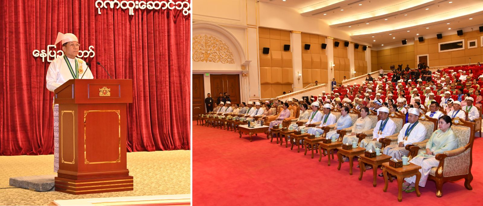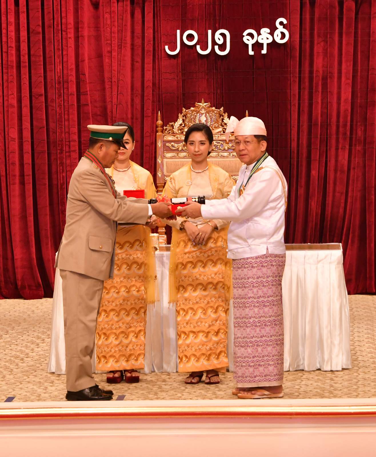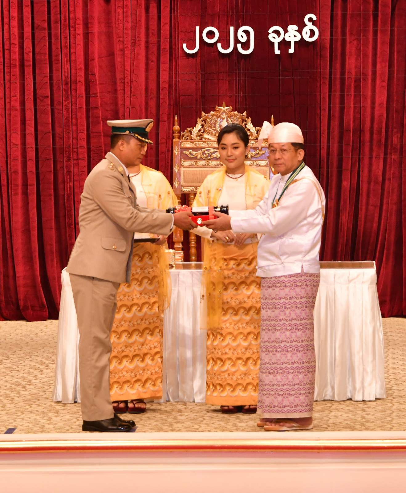The Senior General revealed that at today’s ceremony, the Sithu title will be conferred on two, the Thura title on nine, the Thiri Pyanchi title on five, Zeya Kyaw Htin title on three, Wunna Kyaw Htin title on 96, Alinka Kyaw Swa title on five and Theikpa Kyaw Swa title on two, totalling 122.