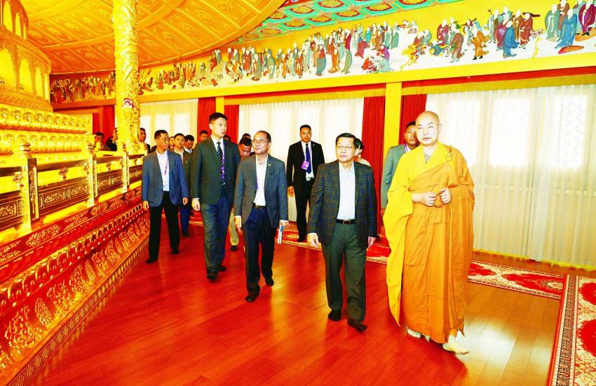 Acting President and SSPC Chairman Senior General Min Aung Hlaing pays homage to sacred Buddha tooth relic at Lingguang Temple in Beijing