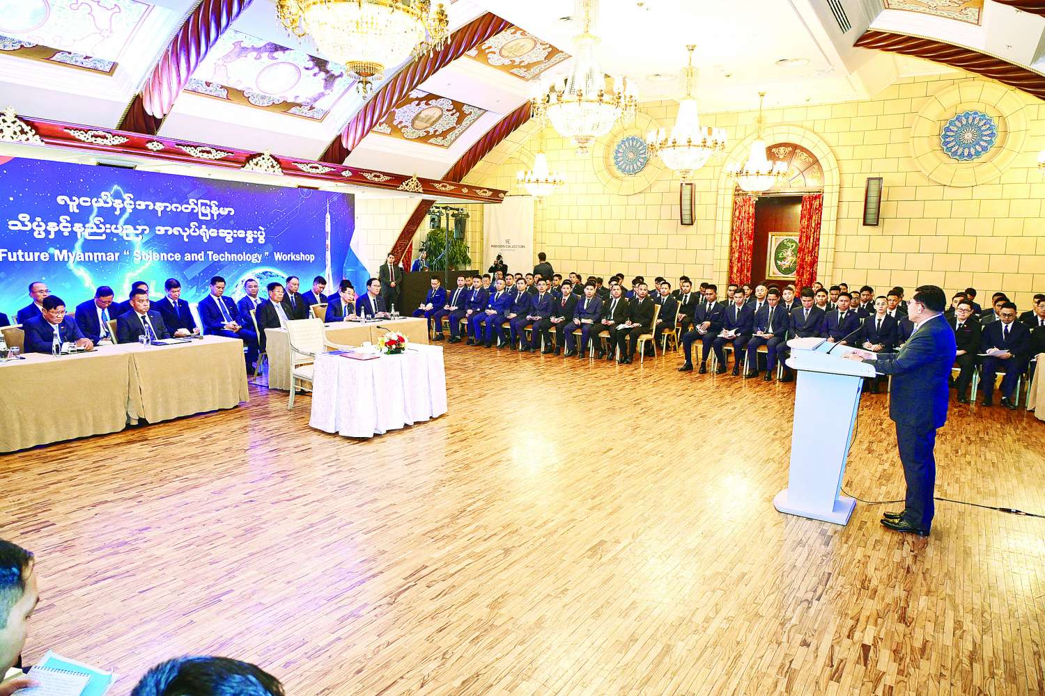 Acting President of the Republic of the Union of Myanmar Chairman of State Security and Peace Commission of the Republic of the Union of Myanmar Senior General Min Aung Hlaing takes part in workshop on science in Moscow, Russian Federation