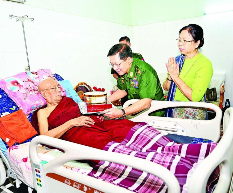 In his response to the reports, the Senior General gave guidance on continuously checking the health conditions of the Sayadaw for providing necessary assistance, arrangements for the Sayadaw to improve immune system, personal hygiene, and physical exercises, and provisions for health aid equipment for the Sayadaw to reside at the monastery with improved health conditions.