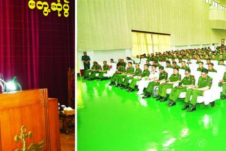 နိုင်ငံတော်စီမံအုပ်ချုပ်ရေးကောင်စီဥက္ကဋ္ဌ တပ်မတော်ကာကွယ်ရေးဦးစီးချုပ် ဗိုလ်ချုပ်မှူးကြီး မင်းအောင်လှိုင် စစ်တက္ကသိုလ်မှနည်းပြအရာရှိကြီးများ၊ကထိကအရာရှိကြီးများ၊ဆရာကြီး၊ဆရာမကြီးများ၊သန္ဓေအရာရှိများ၊သင်တန်းသား/သူများနှင့်ဗိုလ်လောင်းများအား တွေ့ဆုံ