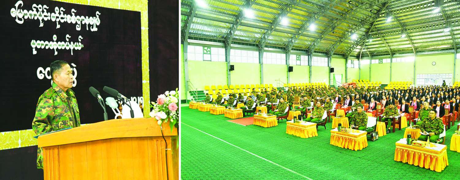 State Security and Peace Commission Vice-Chairman, Deputy Commander-in-Chief of Defence Services, and Commander-in-Chief (Army) Vice-Senior General Soe Win met officers, other ranks, and family members of the PutaO Station at the military headquarters in PutaO yesterday afternoon and delivered a speech.