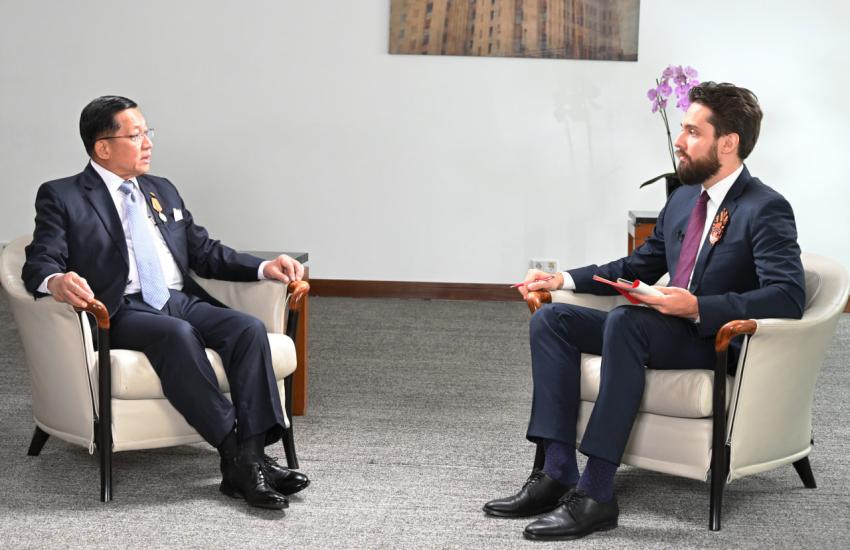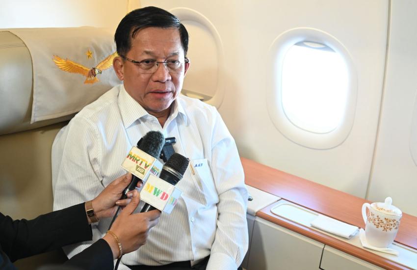 SAC Chairman PM Senior General Min Aung Hlaing gives in-flight interviews on return to Myanmar