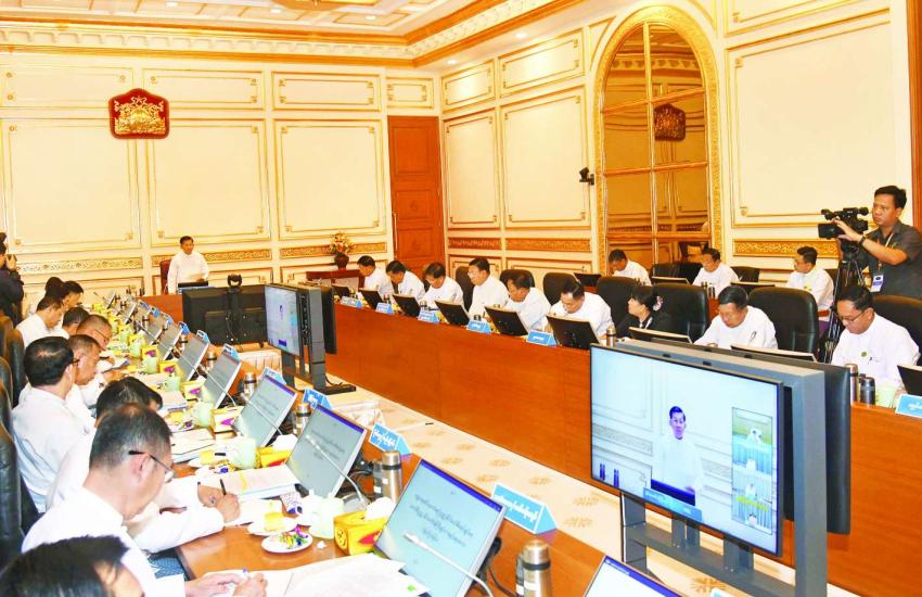 Chairman of the State Administration Council Prime Minister Senior General Min Aung Hlaing, who is also in the capacity of Chairman of the Financial Commission, delivered a speech at the meeting of the Financial Commission at the SAC Chairman’s Office in Nay Pyi Taw yesterday