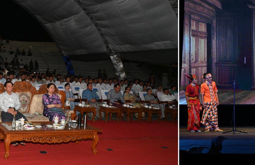 SAC Chairman Prime Minister Senior General Min Aung Hlaing, his wife Daw Kyu Kyu Hla watch Maha Zanaka Drama contest