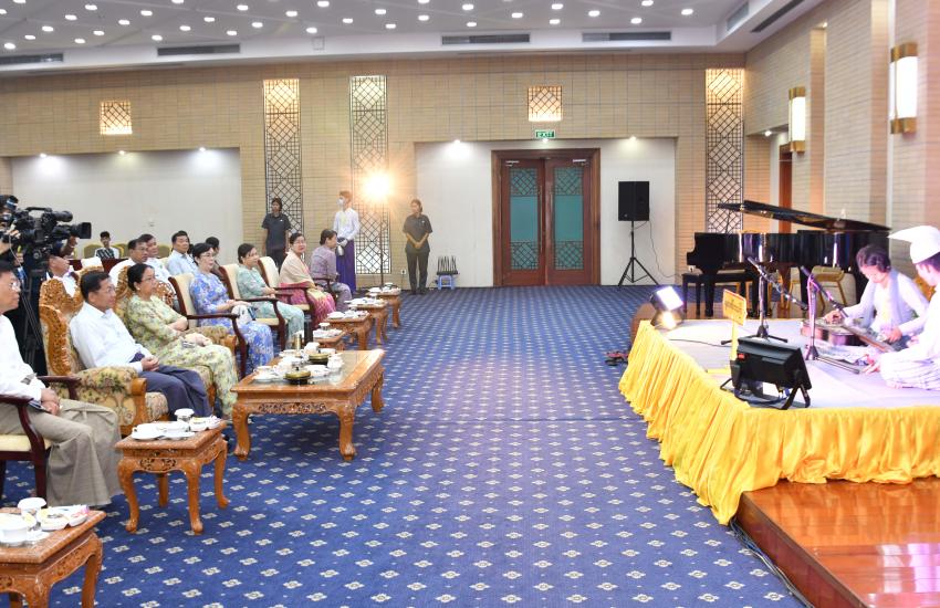SAC Chair PM Senior General Min Aung Hlaing, wife Daw Kyu Kyu Hla watch Performing Arts Competition