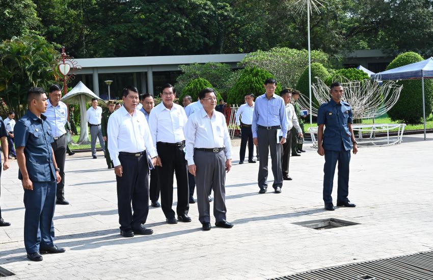 SAC Chairman PM Senior General Min Aung Hlaing lays bejewelled stake for Sarso Beikman construction