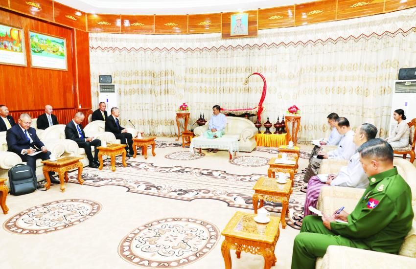 Chairman of the State Administration Council Prime Minister Senior General Min Aung Hlaing received a delegation led by Minister of Economic Development of the Russian Federation Mr Maxim Reshetnikov at the Credentials Hall of the Office of the SAC Chairman in Nay Pyi Taw