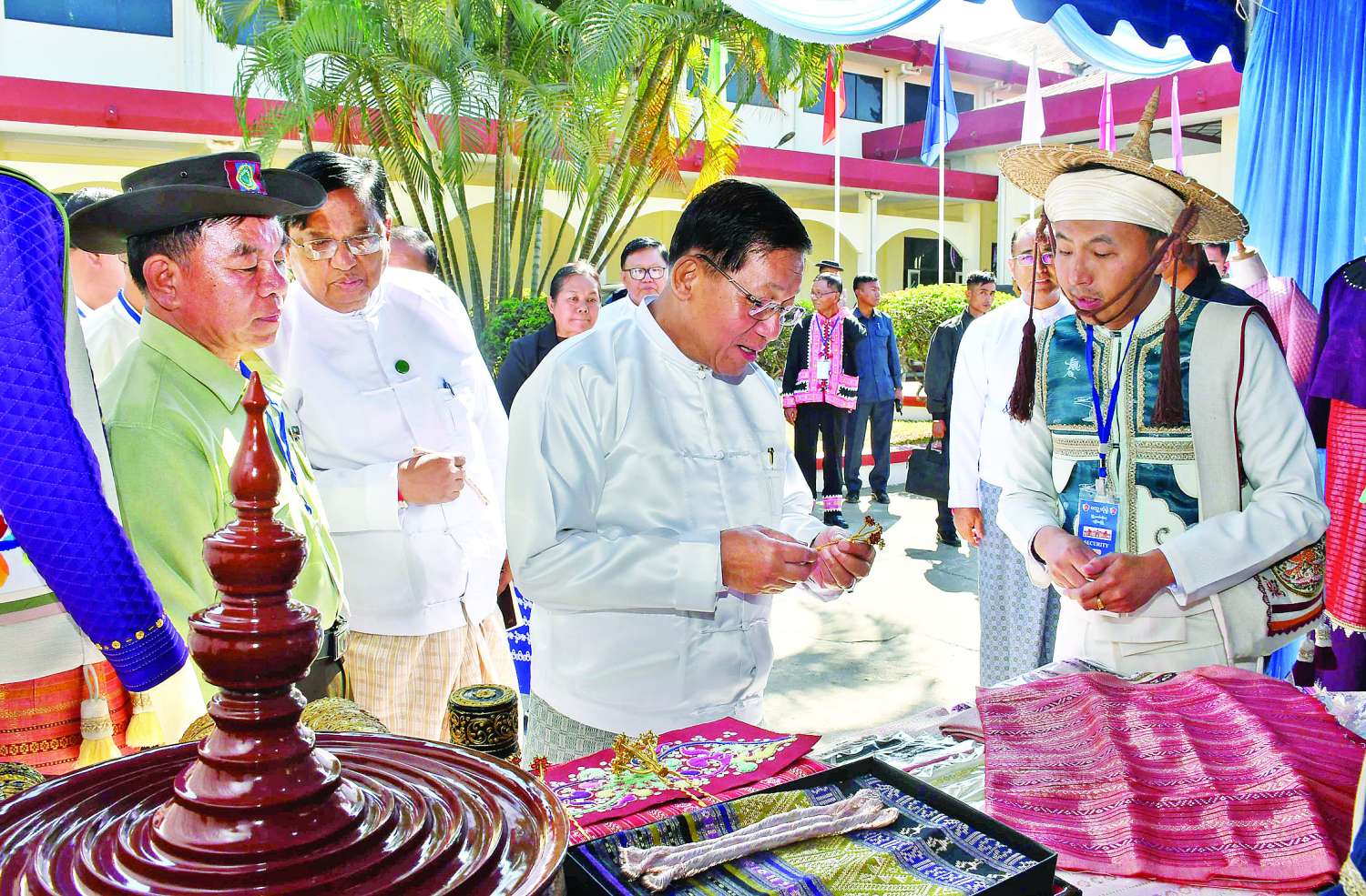 Acting President of the Republic of the Union of Myanmar and State Security and Peace Commission Chairman Senior General Min Aung Hlaing met departmental officials and town elders at the City Hall in Kengtung, Shan State (East), yesterday.