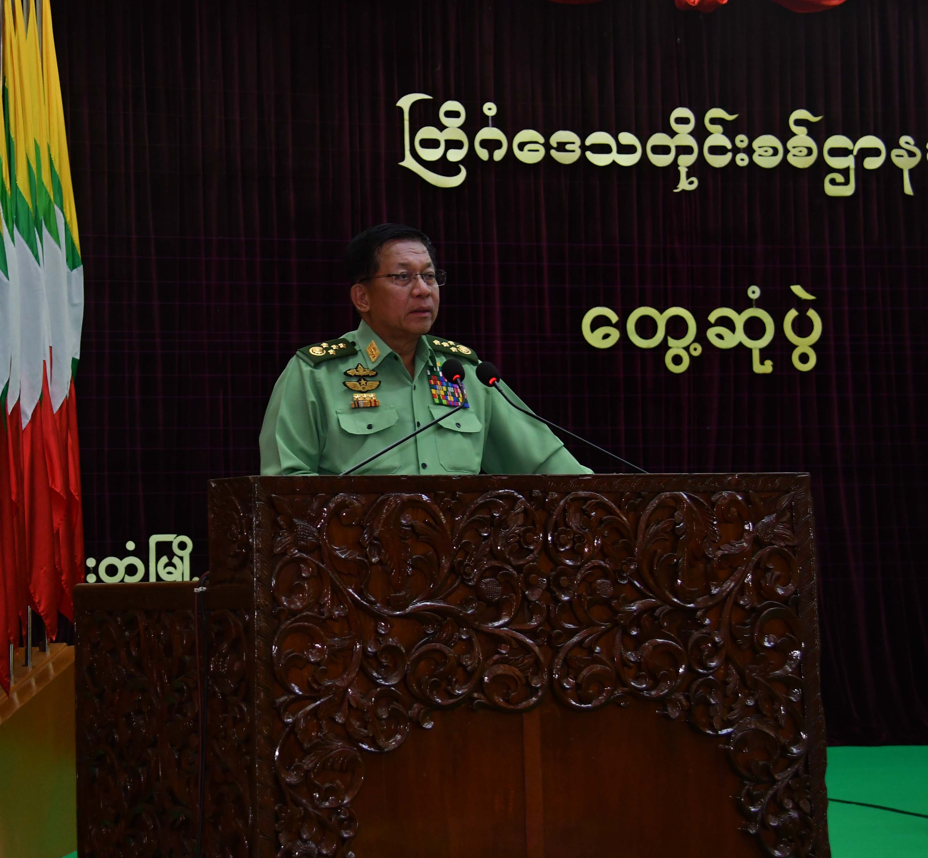 In his response, the Senior General gave guidance to emphasize prevention of online fraud and gambling activities, and drug production and trafficking in the area of the command, make efforts to reopen the basic education schools, systematically manage local peace and stability and security measures, and provide Tatmadaw members and families with welfare facilities.