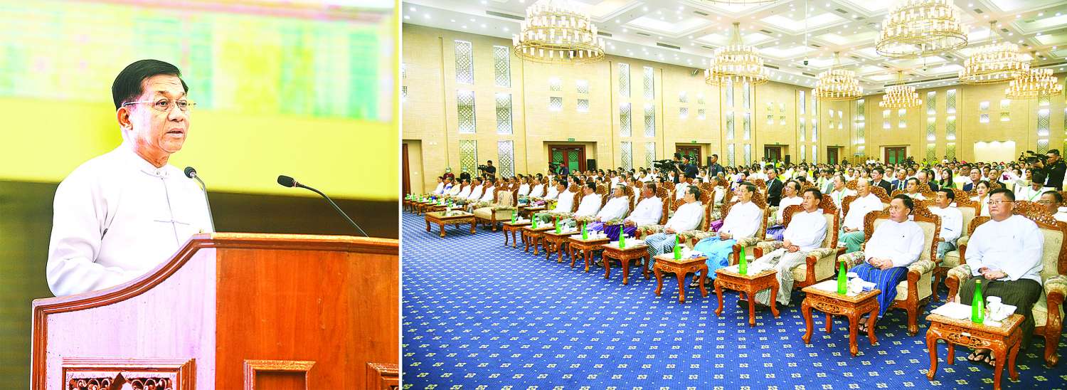 နိုင်ငံတစ်နိုင်ငံ ဖွံ့ဖြိုးတိုးတက်ရန် အခြေခံအကျဆုံးနှင့် အဓိကအကျဆုံး ပကတိလိုအပ်ချက်သည် တိုင်းပြည်တည်ငြိမ်အေးချမ်းရေးပင်ဖြစ်ကြောင်း၊ ထို့ကြောင့် နိုင်ငံတော်စီမံအုပ်ချုပ်ရေးကောင်စီအနေဖြင့် ငြိမ်းချမ်းရေးလုပ်ငန်းစဉ်များကို ဆောင်ရွက်ရာတွင် လက်တွေ့ကျပြီး ဖြစ်နိုင်သည့် လုပ်ဆောင်ချက်များကို ဦးစားပေးဆောင်ရွက်လျက်ရှိကြောင်း၊ ထိုသို့ဆောင်ရွက်ရာတွင် တိုင်းရင်းသားခေါင်းဆောင်များ ကိုယ်တိုင်ကလည်း နိုင်ငံတော်အစိုးရနှင့်လက်တွဲပြီး ဒေသဖွံ့ဖြိုးရေးဆိုင်ရာလုပ်ငန်းများတွင် အားတက်သရော ပူးပေါင်းပါဝင်ဆောင်ရွက်ကြမည်ဆိုပါက တိုင်းရင်းသားများ၏ ဒေသဖွံ့ဖြိုးရေးသည် လျင်လျင်မြန်မြန် တိုးတက်ဖြစ်ထွန်းလာမည်ဖြစ်ကြောင်း၊ ငြိမ်းချမ်းရေးတည်ဆောက်ခြင်းဖြင့် တိုင်းရင်းသားပြည်သူများ၏ လူမှုစီးပွားဘဝကို ပြန်လည်ထူထောင်နိုင်မည်ဖြစ်သည့်အတွက် ငြိမ်းချမ်းရေး၏အရသာနှင့် အသီးအပွင့်များကို ရရှိခံစားလာနိုင်မည်ဖြစ်ခြင်းကြောင့် လက်ရှိဆူပူအကြမ်းဖက်မှုများ လျော့နည်းပပျောက်ရေးနှင့် ဒေသတည်ငြိမ်အေးချမ်းရေးကို ဦးစားပေး လုပ်ဆောင်ကြရမည်ဖြစ်ကြောင်း။
