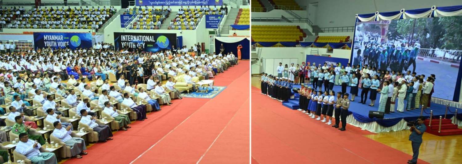 ၂ဝ၂၄ ခုနှစ်၊ အပြည်ပြည်ဆိုင်ရာလူငယ်များနေ့ အခမ်းအနားကျင်းပ နိုင်ငံတော်စီမံအုပ်ချုပ်ရေးကောင်စီဥက္ကဋ္ဌ နိုင်ငံတော်ဝန်ကြီးချုပ် ဗိုလ်ချုပ်မှူးကြီး မင်းအောင်လှိုင် တက်ရောက်အမှာစကားပြောကြား
