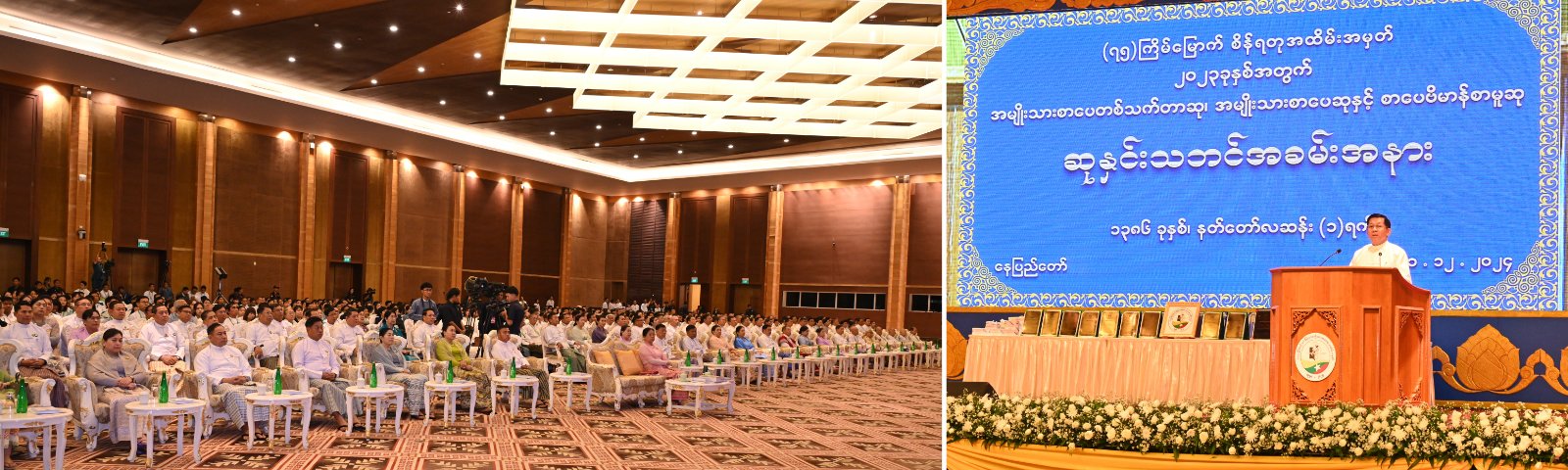 စာအုပ်စာပေ ထုတ်ဝေရေးကဏ္ဍတွင်လည်း နိုင်ငံတကာနှင့် ချိတ်ဆက်ပြီး စာပေယဉ်ကျေးမှု အပြန်အလှန်ဖလှယ်နိုင်ရေးအတွက် နိုင်ငံတော်စီမံအုပ်ချုပ်ရေးကောင်စီအစိုးရက တတ်နိုင်သည့်ဘက်မှ ဆောင်ရွက်ပေးလျက်ရှိကြောင်း၊ ယခုကဲ့သို့ စာပေဆိုင်ရာ ထူးချွန်ဆုများသာမက စာပေနှင့် အနုသုခုမပညာရပ်များတွင် ထူးခြားကောင်းမွန်စွာ တတ်မြောက်သည့် ပုဂ္ဂိုလ်များကိုလည်း ဂုဏ်ထူးဆောင်ဘွဲ့တံဆိပ်များ ချီးမြှင့်အပ်နှင်းလျက်ရှိကြောင်း။