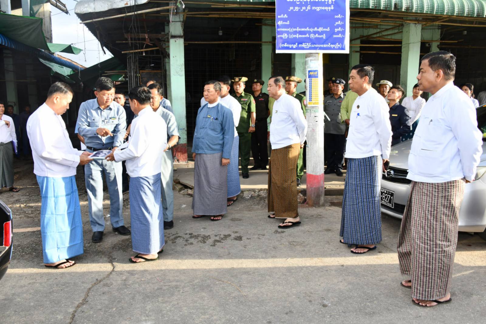 ယင်းနောက် နိုင်ငံတော်စီမံအုပ်ချုပ်ရေးကောင်စီဒုတိယဥက္ကဋ္ဌ ဒုတိယဝန်ကြီးချုပ်နှင့် အဖွဲ့ဝင်များသည် မန္တလေးငလျင်ကြီးနှင့် နောက်ဆက်တွဲငလျင်များကြောင့် ထိခိုက်ပျက်စီးဆုံးရှုံးခဲ့သည့် ပျဉ်းမနားမြို့ အမှတ် (၁) မြို့မဈေးရှိ အဆောက်အဦ A အဆောင်နှင့် B အဆောင်နေရာများတွင် ပြိုကျပျက်စီးမှုများကို ဖယ်ရှားရှင်းလင်းပြီးစီးမှု အခြေအနေများကို ကြည့်ရှုစစ်ဆေးရာ တာဝန်ရှိသူများက ဈေးအသစ်ပြန်လည်တည်ဆောက်ရန်အတွက် နိုင်ငံတော်စီမံအုပ်ချုပ်ရေးကောင်စီ၏ ခွင့်ပြုမိန့်ဖြင့် EOI ခေါ်ယူခဲ့မှု၊ လာရောက်လျှောက်ထားကြသည့် ကုမ္ပဏီများ၏ တင်ပြလာသည့်ဒီဇိုင်းများအပေါ် နည်းပညာအဆိုပြုချက်များနှင့် အခြားလိုအပ်သည့် အုပ်ချုပ်မှုဆိုင်ရာများကို စိစစ်နေမှုအခြေအနေများကို ရှင်းလင်းတင်ပြရာ ဒုတိယဝန်ကြီးချုပ်က သိရှိလိုသည်များကို မေးမြန်းဆွေးနွေးပြီး လိုအပ်သည်များကို လမ်းညွှန်မှာကြားသည်။