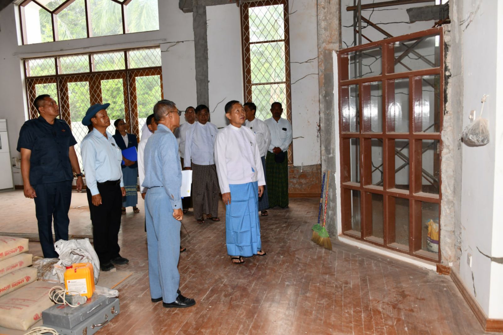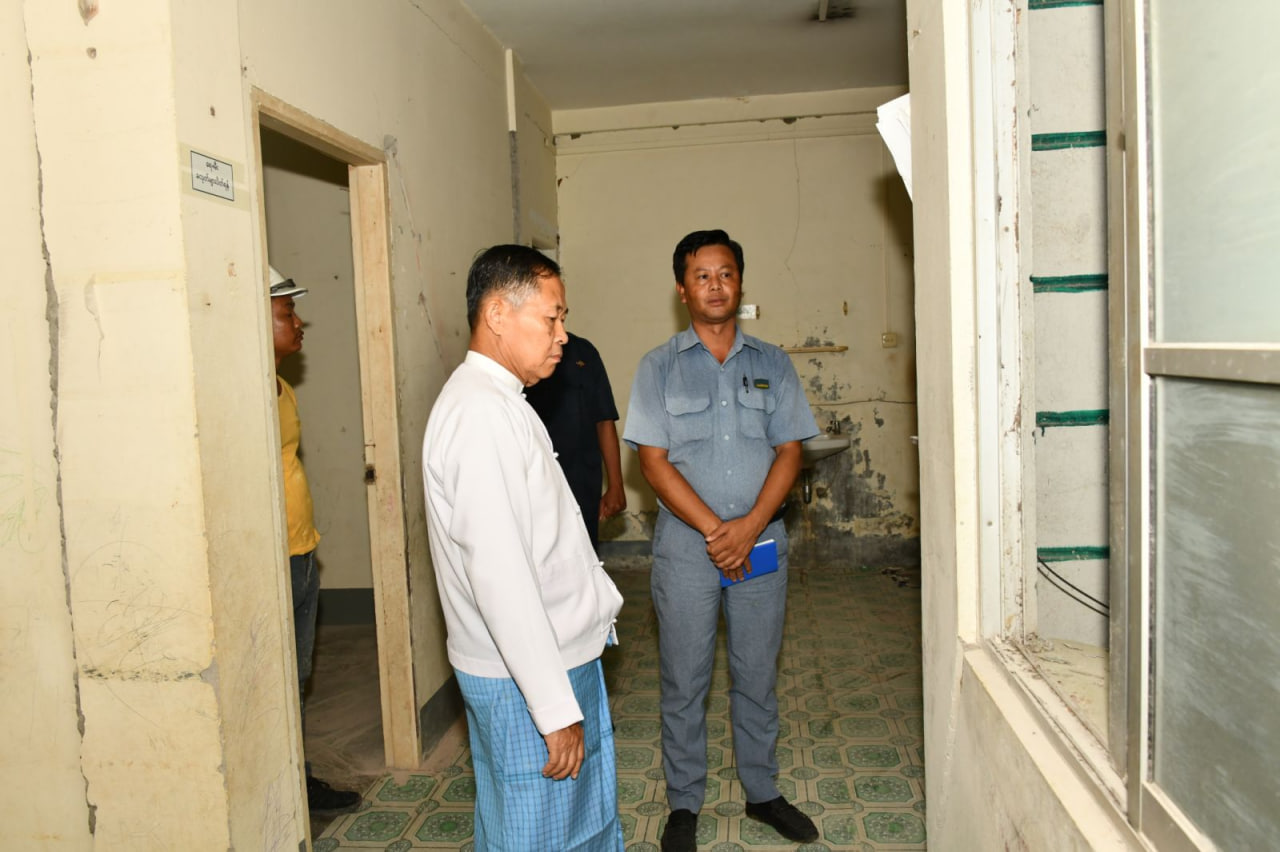 အမျိုးသားသဘာဝဘေးအန္တရာယ်ဆိုင်ရာ စီမံခန့်ခွဲမှုကော်မတီဥက္ကဋ္ဌ နိုင်ငံတော်စီမံအုပ်ချုပ်ရေးကောင်စီ ဒုတိယဥက္ကဋ္ဌ ဒုတိယဝန်ကြီးချုပ် ဒုတိယဗိုလ်ချုပ်မှူးကြီး စိုးဝင်း မန္တလေးငလျင်ကြီးကြောင့် ထိခိုက်ပျက်စီးခဲ့သည့် ဝန်ထမ်းအိမ်ရာများ၊ ပျဉ်းမနားအမှတ် (၁) မြို့မဈေးနှင့် ဥတ္တရသီရိရေလှောင်တမံ ပြန်လည်ပြုပြင်ခြင်းလုပ်ငန်း ဆောင်ရွက်နေမှုအခြေအနေများ လိုက်လံကြည့်ရှုစစ်ဆေး