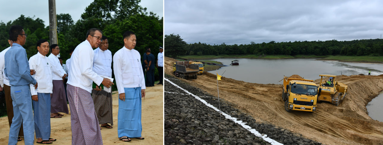 ဆက်လက်၍ နိုင်ငံတော်စီမံအုပ်ချုပ်ရေးကောင်စီဒုတိယဥက္ကဋ္ဌ ဒုတိယဝန်ကြီးချုပ်နှင့် အဖွဲ့ဝင်များသည် ဥတ္တရသီရိမြို့နယ် ကျောက်အိုးချောင်းပေါ်တွင် တည်ရှိသည့် ဥတ္တရသီရိရေလှောင်တမံသို့ ရောက်ရှိကြရာ မန္တလေးငလျင်ကြီးနှင့် နောက်ဆက်တွဲငလျင်ငယ်များကြောင့် ရေလှောင်တမံ ရေထုတ်ပြွန်မှ ရေယိုစိမ့်မှုအခြေအနေနှင့် မြေသားတမံ၏ ဖို့မြေ ထိခိုက်ပျက်စီးမှုများအား ပြန်လည်ပြုပြင်ခြင်းလုပ်ငန်းများဆောင်ရွက်နေမှုကို ကြည့်ရှုစစ်ဆေးပြီး တာဝန်ရှိသူများ၏ လုပ်ငန်းဆောင်ရွက်နေမှု အခြေအနေများ ရှင်းလင်းတင်ပြမှုများအပေါ် လိုအပ်သည်များ လမ်းညွှန်မှာကြားသည်။ အဆိုပါရေလှောင်တမံသည် ရေဆင်းဧရိယာဧက ၁၅၀၀၊ တမံအမြင့် ပေ ၆၀၊ တမံ အလျား ပေ ၁၁၂၀၊ မြေသားတမံအမျိုးအစားဖြစ်ပြီး ဥတ္တသီရိမြို့နယ်အတွင်းရှိ ပြည်သူများ သောက်သုံးရေဖူလုံစွာပေးဝေနိုင်ရေးအတွက် ၂၀၀၈ -၂၀၀၉ ခုနှစ်တွင် တည်ဆောက်ပြီးစီးခဲ့ရာ သက်တမ်းအားဖြင့် ၁၇ နှစ် ရှိပြီဖြစ်ကြောင်းနှင့် ပြန်လည်ပြုပြင်ခြင်းလုပ်ငန်းများကို အမြန်ဆုံးဆောင်ရွက်လျက်ရှိကြောင်း သတင်းရရှိသည်။