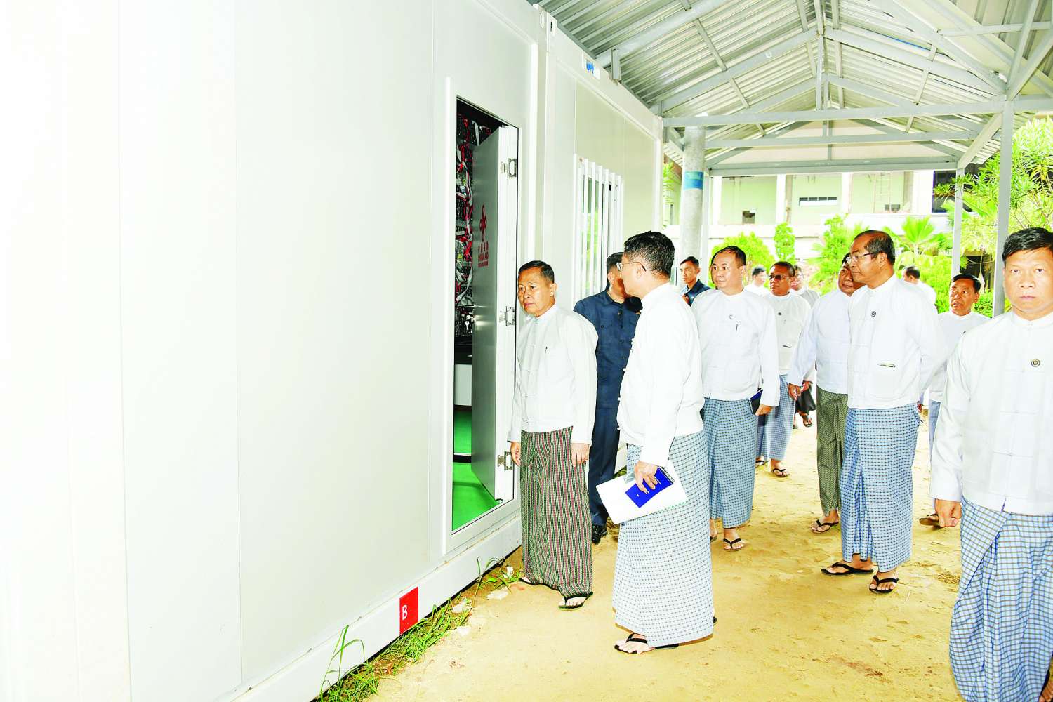 ဆက်လက်၍ နိုင်ငံတော်စီမံအုပ်ချုပ်ရေးကောင်စီဒုတိယဥက္ကဋ္ဌ ဒုတိယဝန်ကြီးချုပ်နှင့် အဖွဲ့ဝင်များသည် RC မြေထိန်းနံရံများတည်ဆောက်ရန်အတွက် Bored Pile တူးဖော်နေမှု၊ ရုံးဝင်းအတွင်း Prefabricated Office ( ၄၀ ပေ x ၄၀ ပေ ) နှင့် ( ၄၀ ပေ x ၆၀ ပေ ) များဖြင့် ယာယီရုံးခန်းများဖွင့်လှစ်၍ ရုံးလုပ်ငန်းများ ဆောင်ရွက်နေမှု အခြေအနေများကို ကြည့်ရှုစစ်ဆေးပြီး လိုအပ်သည်များကို လမ်းညွှန်မှာကြားခဲ့ကြောင်း သတင်းရရှိသည်။