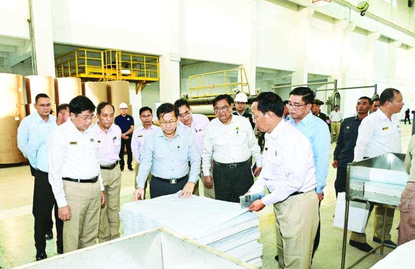 နိုင်ငံတော်လုံခြုံရေးနှင့်အေးချမ်းသာယာရေးကော်မရှင်ဥက္ကဋ္ဌ တပ်မတော်ကာကွယ်ရေးဦးစီးချုပ် ဗိုလ်ချုပ်မှူးကြီး မင်းအောင်လှိုင် စက္ကူစက်ရုံ (သာပေါင်း) သို့ သွားရောက်ကြည့်ရှုစစ်ဆေး