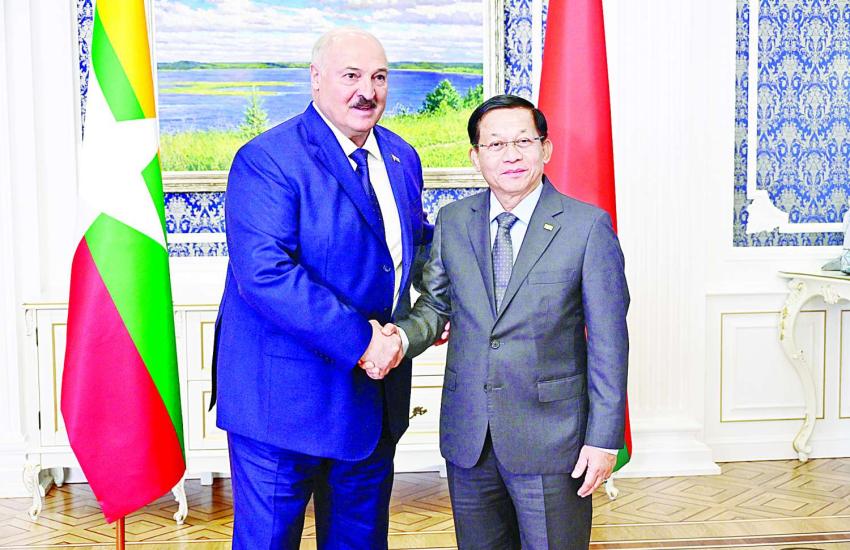 နိုင်ငံတော်စီမံအုပ်ချုပ်ရေးကောင်စီဥက္ကဋ္ဌ နိုင်ငံတော်ဝန်ကြီးချုပ် ဗိုလ်ချုပ်မှူးကြီး မင်းအောင်လှိုင် ဘယ်လာရုစ်သမ္မတနိုင်ငံသမ္မတ H.E. Mr. Alexander Gregoryevich Lukashenko နှင့် တွေ့ဆုံဆွေးနွေး