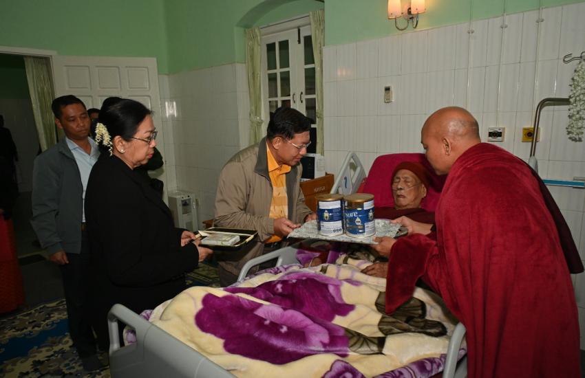 နိုင်ငံတော်စီမံအုပ်ချုပ်ရေးကောင်စီဥက္ကဋ္ဌ နိုင်ငံတော်ဝန်ကြီးချုပ် ဗိုလ်ချုပ်မှူးကြီး မင်းအောင်လှိုင်နှင့် ဇနီး ဒေါ်ကြူကြူလှ မန္တလေးမြို့ မဟာဝိဇိတာရုံပရိယတ္တိစာသင်တိုက် ဦးစီးပဓာနနာယက ဆရာတော်ကြီး၏ ကျန်းမာရေးအခြေအနေများအား သွားရောက်ကြည့်ရှု၊ လိုအပ်သည်များ ဖြည့်ဆည်းဆောင်ရွက်