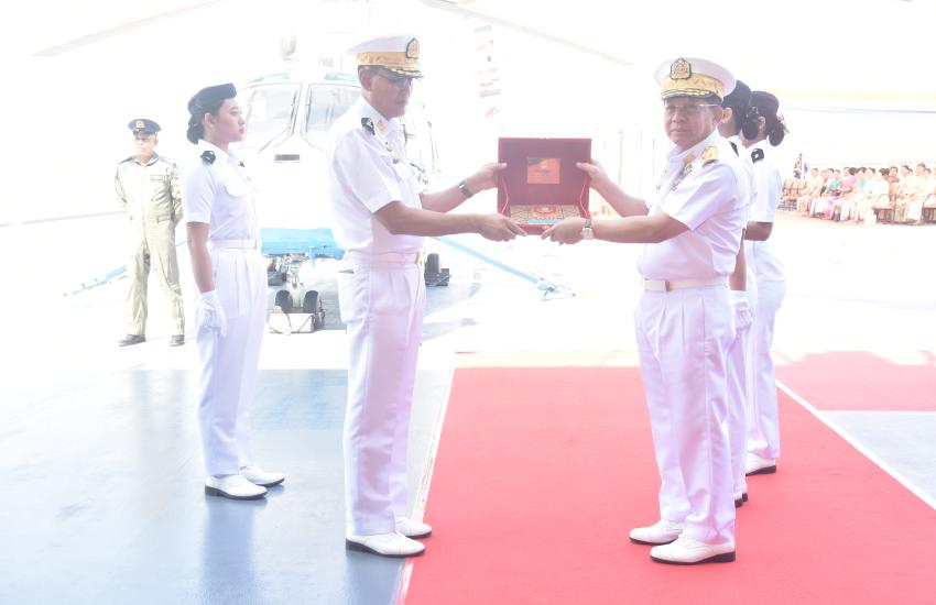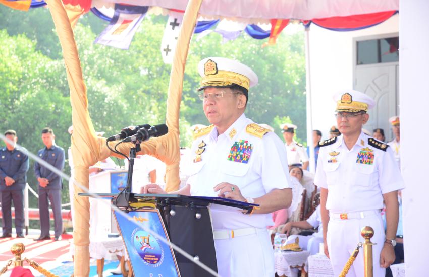 နိုင်ငံတော်စီမံအုပ်ချုပ်ရေးကောင်စီဥက္ကဋ္ဌ တပ်မတော်ကာကွယ်ရေးဦးစီးချုပ် ဗိုလ်ချုပ်မှူးကြီး မင်းအောင်လှိုင် (၇၇) နှစ်မြောက် တပ်မတော် (ရေ) နှစ်ပတ်လည်နေ့အထိမ်းအမှတ် စစ်ရေယာဉ်များတပ်တော်ဝင်ခြင်းအခမ်းအနားသို့ တက်ရောက်ချီးမြှင့်