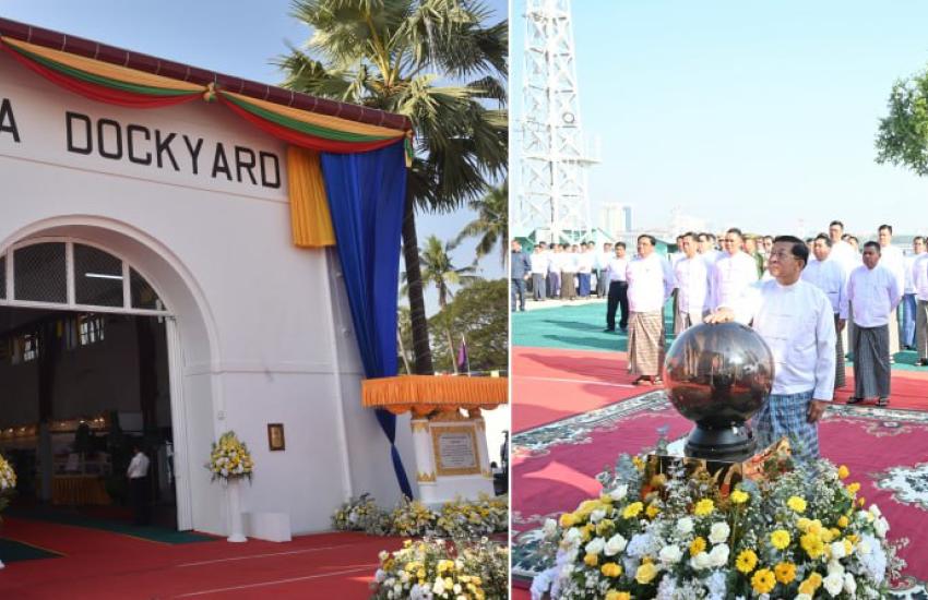 နိုင်ငံတော်စီမံအုပ်ချုပ်ရေးကောင်စီဥက္ကဋ္ဌ တပ်မတော်ကာကွယ်ရေးဦးစီးချုပ် ဗိုလ်ချုပ်မှူးကြီး မင်းအောင်လှိုင် တပ်မတော် (ရေ) မှ တည်ဆောက်ပြီးစီးခဲ့သည့် (၁၃၅) မီတာ ဖရီဂိတ်စစ်ရေယာဉ်ကြီး အမည်ပေးခြင်းနှင့် ရေချပေးခြင်း မင်္ဂလာအခမ်းအနားသို့ တက်ရောက်အားပေးချီးမြှင့်