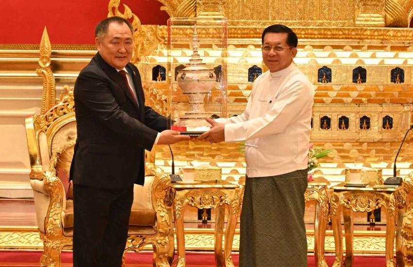 နိုင်ငံတော်စီမံအုပ်ချုပ်ရေးကောင်စီဥက္ကဋ္ဌ နိုင်ငံတော်ဝန်ကြီးချုပ် ဗိုလ်ချုပ်မှူးကြီး မင်းအောင်လှိုင်ထံ ရုရှားဖက်ဒရေးရှင်းနိုင်ငံ၊ ဒူးမားလွှတ်တော် ဒုတိယဥက္ကဋ္ဌ ဦးဆောင်သည့် ကိုယ်စားလှယ်အဖွဲ့က လာရောက်ဂါရဝပြုတွေ့ဆုံ