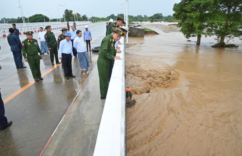 နိုင်ငံတော်စီမံအုပ်ချုပ်ရေးကောင်စီဥက္ကဋ္ဌ တပ်မတော်ကာကွယ်ရေးဦးစီးချုပ် ဗိုလ်ချုပ်မှူးကြီး မင်းအောင်လှိုင် နေပြည်တော်ကောင်စီနယ်မြေအတွင်း မိုးအဆက်မပြတ်ရွာသွန်းမှုကြောင့် ပျက်စီးမှုများဖြစ်ပေါ်ခဲ့သည့် လမ်းတံတားများ ပြန်လည်ပြုပြင်ဆောင်ရွက်နေမှုနှင့် ရေကြီးရေလျှံမှုအခြေအနေများအား လိုက်လံကြည့်ရှုစစ်ဆေး