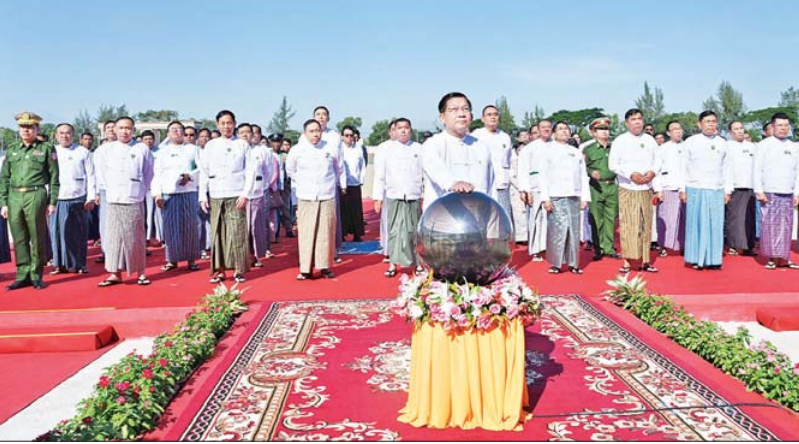 ယင်းနောက် နိုင်ငံတော်ယာယီသမ္မတ နိုင်ငံတော်လုံခြုံရေးနှင့်အေးချမ်းသာယာရေးကော်မရှင်ဥက္ကဋ္ဌနှင့် အခမ်းအနားတက်ရောက်လာကြသူများသည် မှတ်တမ်းတင်စုပေါင်းဓာတ်ပုံရိုက်ကြသည်။