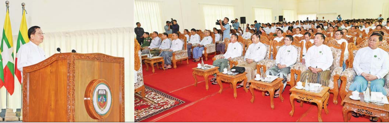 တင်ပြမှုများနှင့်ပတ်သက်၍ နိုင်ငံတော်ယာယီသမ္မတ နိုင်ငံတော်လုံခြုံရေးနှင့်အေးချမ်းသာယာရေးကော်မရှင်ဥက္ကဋ္ဌက မိမိတို့နိုင်ငံတွင် စိုက်ပျိုးရေးနှင့် မွေးမြူရေးတက္ကသိုလ်မှာ ယခင်ကတစ်ခုတည်းသာရှိခဲ့ကြောင်း၊ ထို့ကြောင့် စိုက်ပျိုးရေးနှင့် မွေးမြူရေးတက္ကသိုလ် (မအူပင်) ဖွင့်လှစ်နိုင်ရေး မိမိအနေဖြင့် ၂၀၂၁ ခုနှစ်မှစတင်၍ ကြိုးပမ်းဆောင်ရွက်ခဲ့သော်လည်း အကြောင်းအမျိုးမျိုးကြောင့် ဖွင့်လှစ်ရန် နှောင့်နှေးခဲ့ရကြောင်း၊ စိုက်ပျိုးရေးနှင့် မွေးမြူရေးတက္ကသိုလ် များသို့ တက်ရောက်လျက်ရှိသည့် ကျောင်းသား၊ ကျောင်းသူများအား ပညာသင်ထောက်ပံ့ကြေးများ ပေးအပ်နိုင်ရေး စီမံဆောင်ရွက်လျက်ရှိကြောင်း၊ မိမိတို့နိုင်ငံသည် စိုက်ပျိုးရေးနှင့် မွေးမြူရေးကို အခြေခံသည့်စီးပွားရေး အဓိကထားဆောင်ရွက်ခြင်းဖြစ်သဖြင့် မိရိုးဖလာစိုက်ပျိုးမွေးမြူရေးလုပ်ငန်းများကို ဆောင်ရွက်ခြင်းထက် နည်းစနစ်ကျနသည့် ခေတ်မီစိုက်ပျိုးမွေးမြူရေးလုပ်ငန်းများကို ဆောင်ရွက်နိုင်မည်ဆိုပါက များစွာအကျိုးဖြစ်ထွန်းစေမည်ဖြစ်ကြောင်း၊ ထို့ကြောင့် စိုက်ပျိုးမွေးမြူရေးပညာရှင်များကို မွေးထုတ်ပေးနိုင်ရေး ဆောင်ရွက်နေခြင်းဖြစ်ပြီး Agro Base Industries ကိုဆောင်ရွက်နိုင်ရေး ရည်ရွယ်ဆောင်ရွက်နေခြင်းဖြစ်ကြောင်း၊ နိုင်ငံတော်အနေဖြင့် နိုင်ငံသားများ၏ ပညာရည်မြင့်မားစေရေး ကြိုပမ်းဆောင်ရွက်လျက်ရှိပြီး မိမိတို့နိုင်ငံ၏ ပကတိလိုအပ်ချက်ဖြစ်သည့် စိုက်ပျိုးမွေးမြူရေးလုပ်ငန်းများအတွက် ပညာတတ်လူသားအရင်းအမြစ်များ ပေါကြွယ်ဝလာစေရေး ဌာနဆိုင်ရာတာဝန်ရှိသူများ အားလုံးက ဝိုင်းဝန်းဆောင်ရွက်ပေးကြရန်လိုကြောင်း၊ အခြေခံပညာကျောင်းများ၌လည်း တန်းစဉ်ကူးပြောင်းမှုများ မြင့်မားလာစေရေးကိုလည်း ဝိုင်းဝန်းဆောင်ရွက်ကြစေလိုကြောင်း၊ ကျေးလက်ဒေသဖွံ့ဖြိုးရေးအတွက် ပညာရည်မြှင့်တင်ရေးလုပ်ငန်းများကို ဆောင်ရွက်ပေးရန်လိုကြောင်း၊ “နိုင်ငံတော်ဖွံ့ဖြိုးဖို့ ပညာရေးကို အားပေးစို့” ဟူသည့် နိုင်ငံတော်မှ ချမှတ်ထားသည့်အတိုင်း ပညာရေးဖွံ့ဖြိုးတိုးတက်စေရေး အားပေးဆောင်ရွက်ကြရန်လိုကြောင်း။