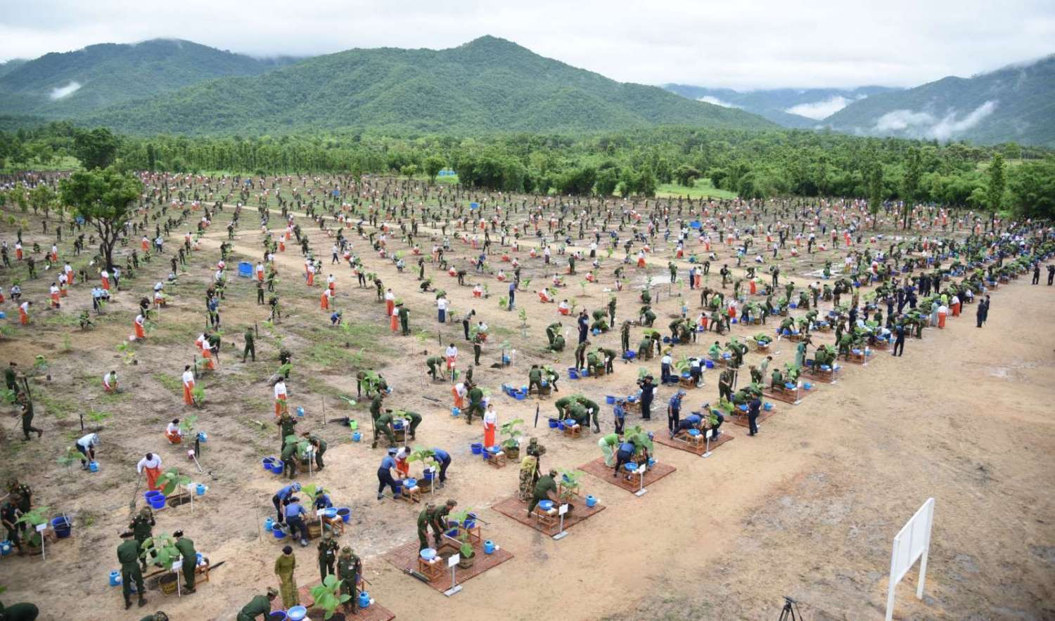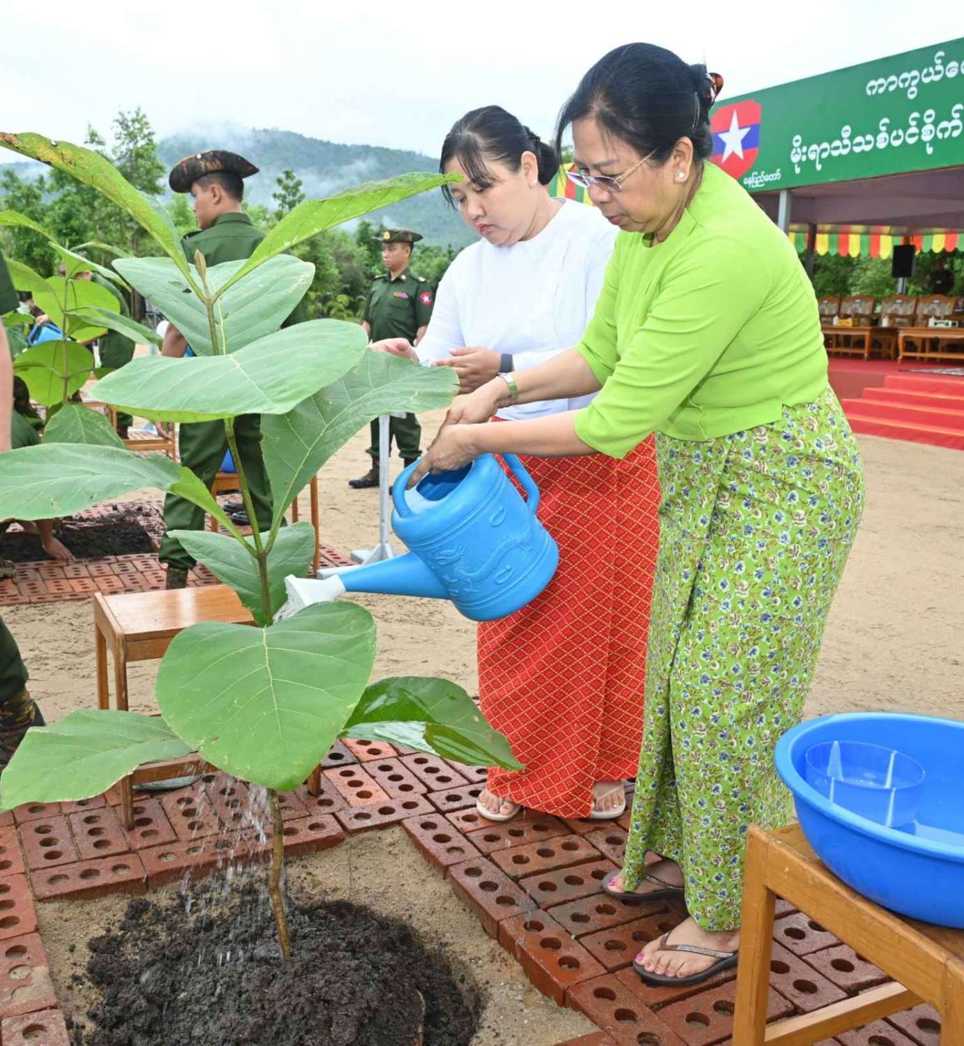 ဦးစွာ နိုင်ငံတော်စီမံအုပ်ချုပ်ရေးကောင်စီဥက္ကဋ္ဌ တပ်မတော်ကာကွယ်ရေးဦးစီးချုပ်နှင့် ဇနီးတို့သည် နိုင်ငံတော်စီမံအုပ်ချုပ်ရေးကောင်စီဒုတိယဥက္ကဋ္ဌ ဒုတိယတပ်မတော်ကာကွယ်ရေးဦးစီးချုပ် ကာကွယ်ရေးဦးစီးချုပ် (ကြည်း)၊ ညှိနှိုင်းကွပ်ကဲရေးမှူး (ကြည်း၊ ရေ၊ လေ)နှင့်ဇနီး၊ ကာကွယ်ရေးဦးစီးချုပ်(လေ)၊ ကာကွယ်ရေးဦးစီးချုပ်ရုံးမှ တပ်မတော်အရာရှိကြီးများနှင့် ဇနီးများ၊ အခမ်းအနားတက်ရောက်လာကြသည့် အရာရှိ၊ စစ်သည် မိသားစုများနှင့်အတူ သတ်မှတ်နေရာအသီးသီးတွင် သစ်ပင်များကို အတူတကွစုပေါင်းစိုက်ပျိုးကြသည်။ ထို့နောက် နိုင်ငံတော်စီမံအုပ်ချုပ်ရေး ကောင်စီဥက္ကဋ္ဌ တပ်မတော်ကာကွယ်ရေးဦးစီးချုပ်နှင့် ဇနီး၊ အဖွဲ့ဝင်များသည် အရာရှိ၊ စစ်သည် မိသားစုများ၏ စုပေါင်းသစ်ပင်စိုက်ပျိုးနေမှုအား လှည့်လည်ကြည့်ရှုအားပေးကြသည်။