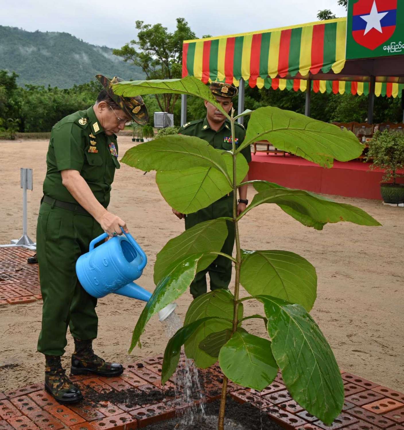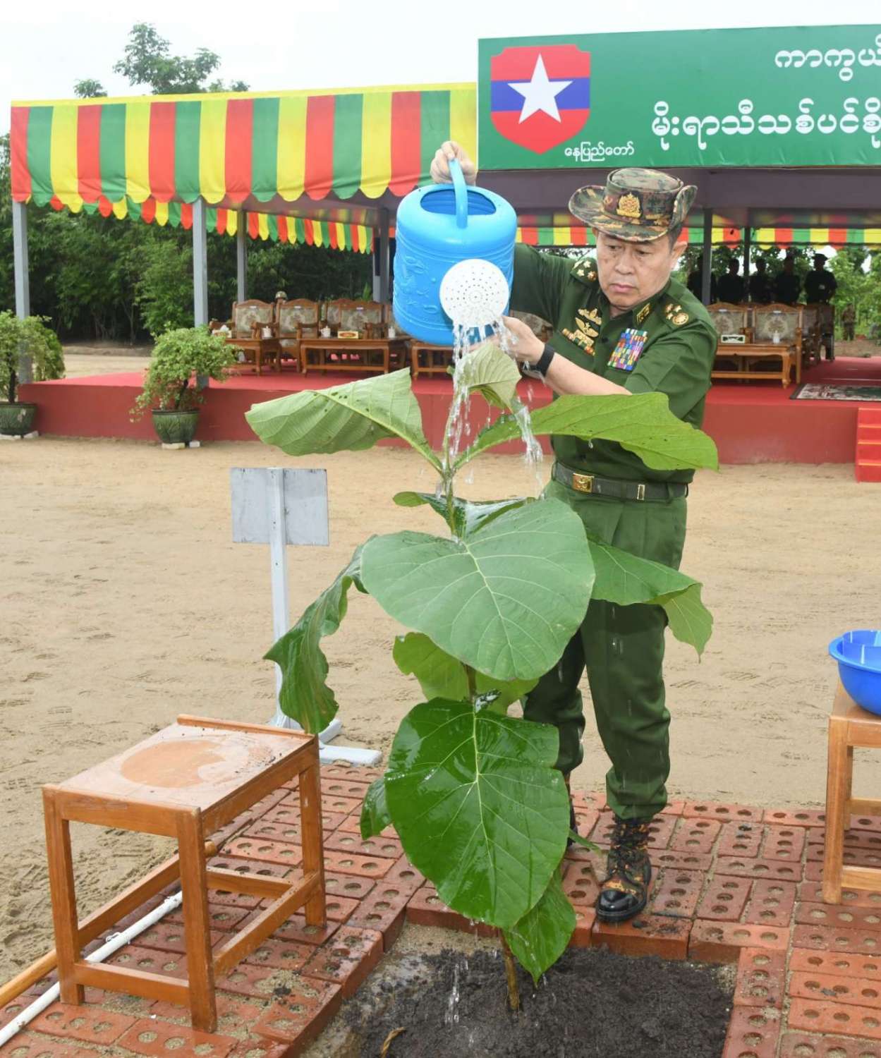 ယနေ့တွင် ၂၀၂၄ ခုနှစ်၊ ကာကွယ်ရေးဦးစီးချုပ်ရုံး (ကြည်း၊ ရေ၊ လေ) မိသားစုများ၏ ဒုတိယအကြိမ်မိုးရာသီသစ်ပင်စိုက်ပျိုးပွဲ အခမ်းအနားကို နေပြည်တော်၊ ဇေယျာသီရိမြို့နယ်၊ ရေဆင်းဆည်အနီး၌ကျင်းပပြုလုပ်ရာ နိုင်ငံတော်စီမံအုပ်ချုပ်ရေး ကောင်စီဥက္ကဋ္ဌ တပ်မတော်ကာကွယ်ရေးဦးစီးချုပ် ဗိုလ်ချုပ်မှူးကြီးမင်းအောင်လှိုင်တက်ရောက်၍ ရတနာတန်းဝင် ကျွန်းပင်ကို ဦးဆောင်စိုက်ပျိုးပေးသည်။