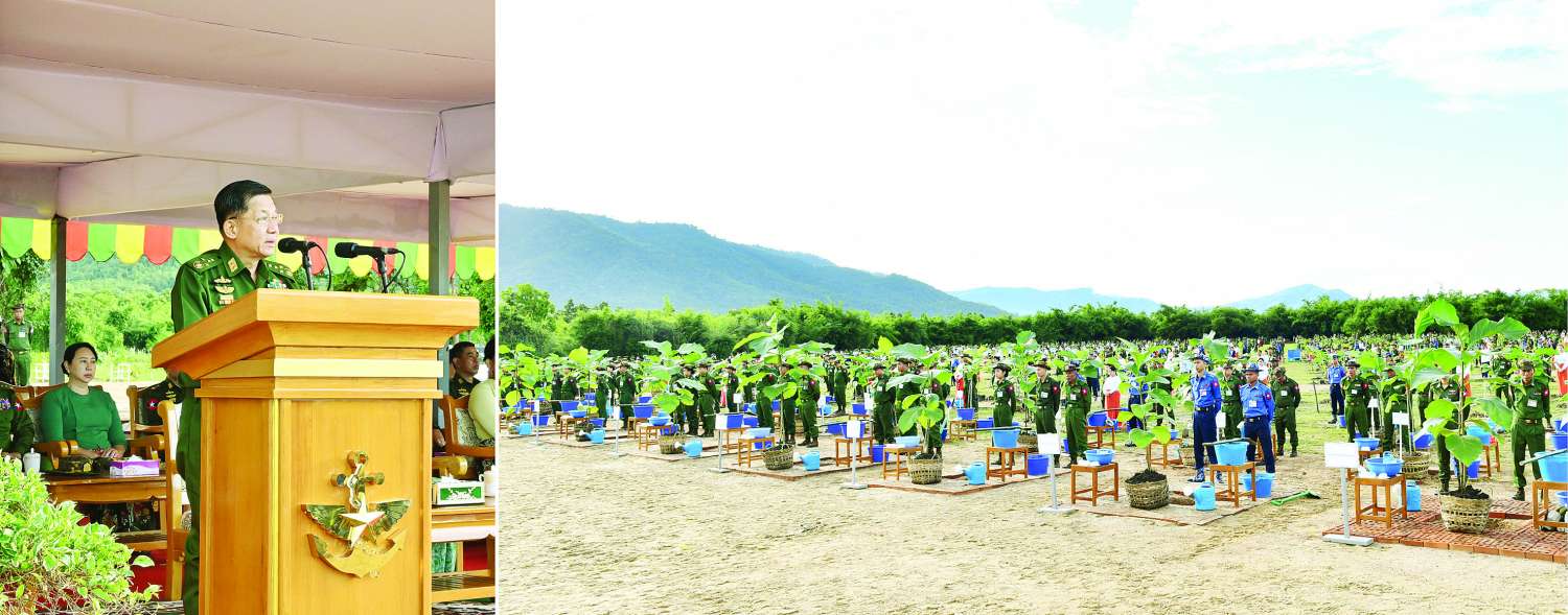 ဦးစွာ နိုင်ငံတော်စီမံအုပ်ချုပ်ရေးကောင်စီဥက္ကဋ္ဌ တပ်မတော်ကာကွယ်ရေးဦးစီးချုပ်က အမှာစကားပြောကြားရာတွင် သစ်ပင်သစ်တောများရှိခြင်းသည် မိမိတို့နေထိုင်သည့် ပတ်ဝန်းကျင်သာယာလှပမှုကို ဖြစ်ပေါ်စေပြီး လူနှင့်သက်ရှိတို့အတွက် ကောင်းကျိုးများကို ရရှိကြောင်း၊ ထို့ကြောင့် ကာကွယ်ရေးဦးစီးချုပ်ရုံး (ကြည်း၊ ရေ၊ လေ) မိသားစုများနှင့် တိုင်းစစ်ဌာနချုပ်အသီးသီးတွင် မိုးရာသီတစ်အုပ်တစ်မ သစ်ပင်စိုက်ပျိုးပွဲများကို နှစ်စဉ်ပြုလုပ်၍ စိုက်ပျိုးနေခြင်းဖြစ်ကြောင်း၊ သစ်ပင်စိုက်ပျိုးခြင်း၊ သစ်တောထိန်းသိမ်းခြင်းလုပ်ငန်းများကို အမျိုးသားရေးလုပ်ငန်းစဉ်အဖြစ် စဉ်ဆက်မပြတ် ဆက်လက်ဆောင်ရွက်သွားကြရမည်ဖြစ်ကြောင်း။