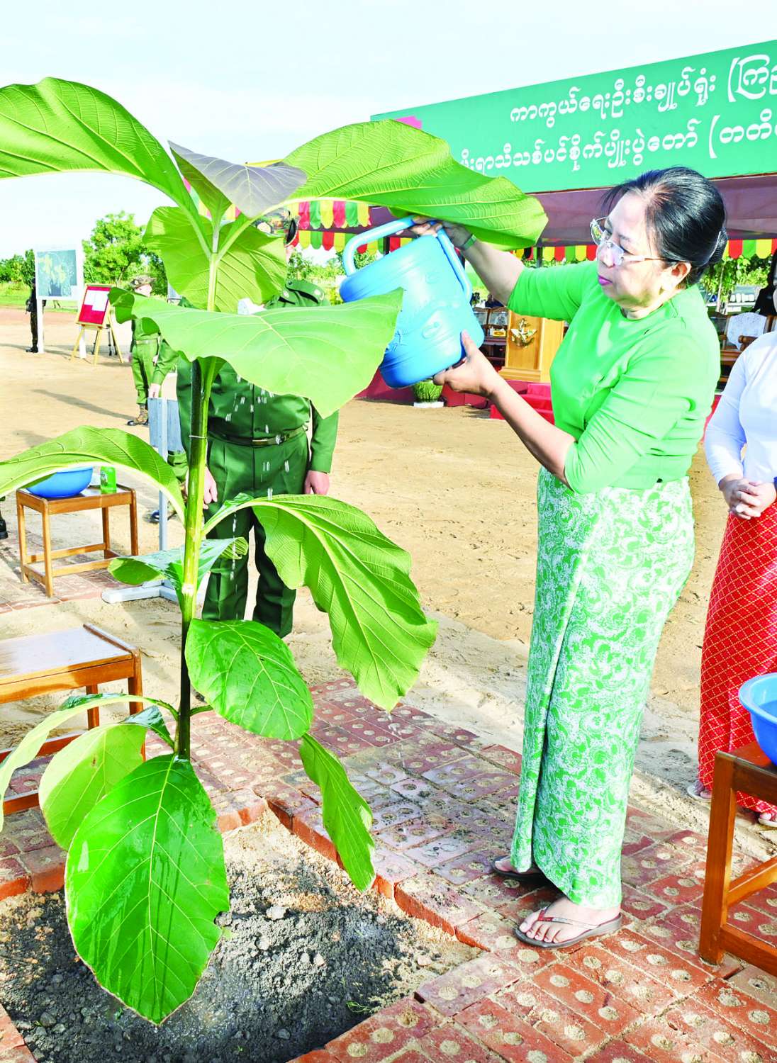 ထို့နောက် နိုင်ငံတော်စီမံအုပ်ချုပ်ရေးကောင်စီဥက္ကဋ္ဌ တပ်မတော်ကာကွယ်ရေးဦးစီးချုပ်နှင့် ဇနီးတို့သည် နိုင်ငံတော်စီမံအုပ်ချုပ်ရေးကောင်စီဒုတိယဥက္ကဋ္ဌ ဒုတိယတပ်မတော်ကာကွယ်ရေးဦးစီးချုပ် ကာကွယ်ရေးဦးစီးချုပ် (ကြည်း) နှင့်ဇနီး၊ ညှိနှိုင်းကွပ်ကဲရေးမှူး (ကြည်း၊ရေ၊လေ) နှင့်ဇနီး၊ ကာကွယ်ရေးဦးစီးချုပ်ရုံးမှ အဆင့်မြင့်တပ်မတော်အရာရှိကြီးများနှင့် ဇနီးများ၊ ပြည်ထောင်စုအဆင့်ပုဂ္ဂိုလ်များနှင့် ဇနီးများ၊ နိုင်ငံတော်ကာကွယ်ရေးတက္ကသိုလ်မှ သင်တန်းသားအရာရှိကြီးများ၊ အခမ်းအနား တက်ရောက်လာကြသည့် အရာရှိ၊ စစ်သည် မိသားစုများနှင့်အတူ သတ်မှတ်နေရာအသီးသီးတွင် သစ်ပင်များကို အတူတကွစုပေါင်းစိုက်ပျိုးကြသည်။