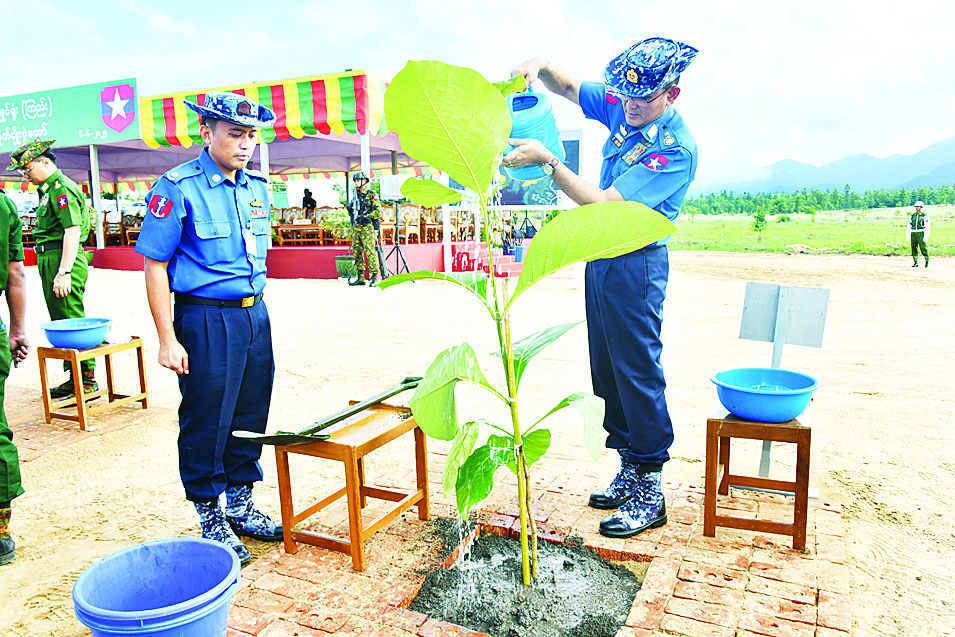 သဘာဝပတ်ဝန်းကျင်အား ထိန်းသိမ်းနိုင်စေရန်နှင့် ရာသီဥတုကို အထောက်အကူဖြစ်စေရန်၊ အရိပ်အာဝါသ ရရှိစေရန်၊ နိုင်ငံ့စီးပွားရေးအတွက် တစ်ဖက်တစ်လမ်းမှ အထောက်အကူ ဖြစ်စေရန် ရည်ရွယ်၍ ကာကွယ်ရေးဦးစီးချုပ်ရုံး(ကြည်း၊ ရေ၊ လေ) မိသားစုများနှင့် တိုင်းစစ်ဌာနချုပ်အသီးသီးတို့တွင် ၂၀၁၁ ခုနှစ်မှစ၍ နှစ်စဉ် မိုးရာသီတစ်အုပ်တစ်မ သစ်ပင်စိုက်ပျိုးပွဲများ ကျင်းပပြုလုပ်လျက်ရှိသည်။