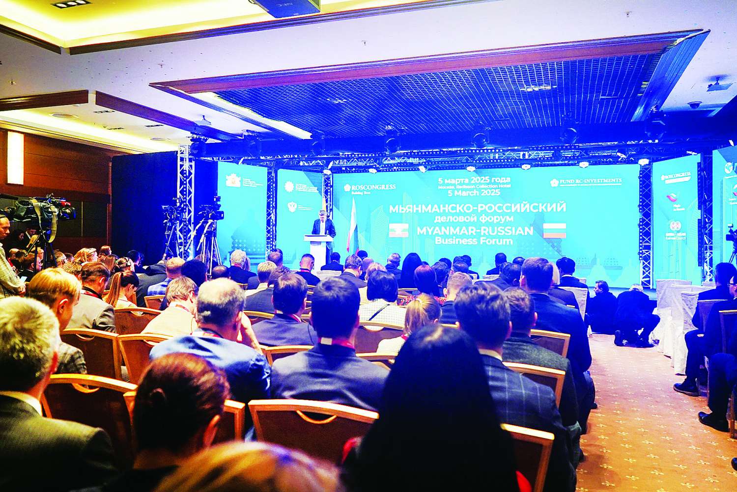 ရုရှားဖက်ဒရေးရှင်းနိုင်ငံဆိုင်ရာ မြန်မာနိုင်ငံသံရုံး၊ ပြည်ထောင်စုသမ္မတမြန်မာနိုင်ငံတော်ကုန်သည်များနှင့် စက်မှုလက်မှုလုပ်ငန်းရှင်များအသင်းချုပ် (UMFCCI) နှင့် Myanmar Airways International (MAI)၊ Roscongress Foundation၊ Fund RC-Investments၊ Russia-ASEAN Business Council နှင့် Russia - Myanmar Business Council တို့ ပူးပေါင်းကျင်းပသည့် ရုရှား - မြန်မာ စီးပွားရေးဖိုရမ်အား ယနေ့ဒေသစံတော်ချိန်နံနက်ပိုင်းတွင် မော်စကိုမြို့ Radisson Collection ဟိုတယ်ရှိ Business Hall ၌ ကျင်းပပြုလုပ်သည်။