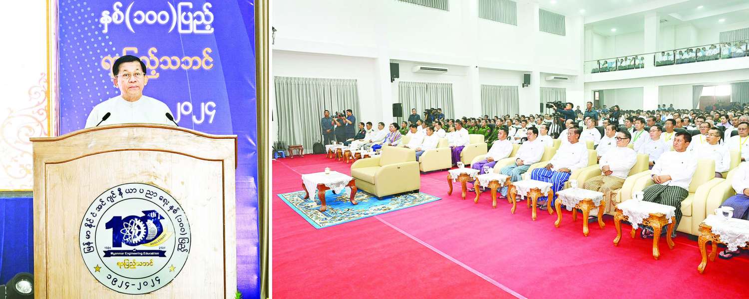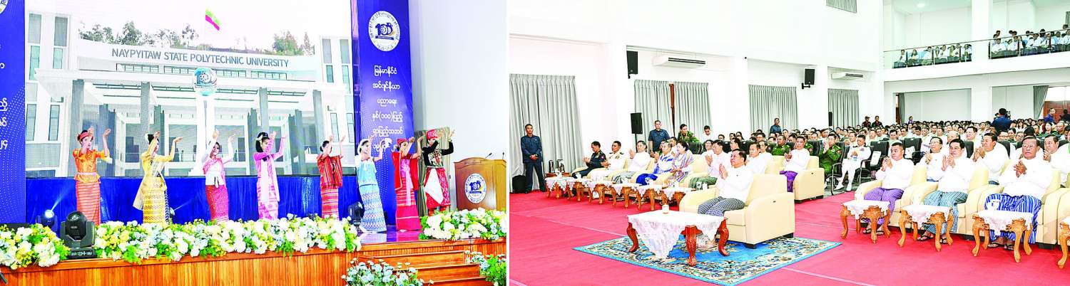 မြန်မာနိုင်ငံအင်ဂျင်နီယာပညာရေး နှစ်(၁၀၀)ပြည့် ရာပြည့်သဘင် နှင့် Naypyitaw State Polytechnic University ဖွင့်ပွဲ အခမ်းအနားကျင်းပ နိုင်ငံတော်စီမံအုပ်ချုပ်ရေးကောင်စီဥက္ကဋ္ဌ နိုင်ငံတော်ဝန်ကြီးချုပ် ဗိုလ်ချုပ်မှူးကြီး မင်းအောင်လှိုင် တက်ရောက်ချီးမြှင့်