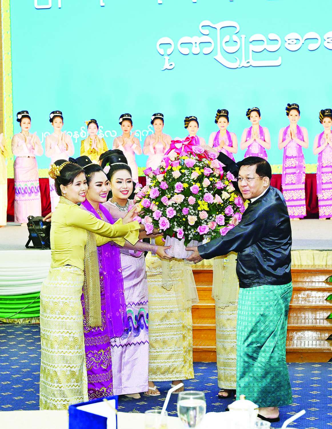 ဂုဏ်ပြုညစာစားပွဲအခမ်းအနားအပြီးတွင် နိုင်ငံတော်စီမံအုပ်ချုပ်ရေးကောင်စီဥက္ကဋ္ဌ နိုင်ငံတော်ဝန်ကြီးချုပ် ဗိုလ်ချုပ်မှူးကြီး မင်းအောင်လှိုင်က ကပြဖျော်ဖြေခဲ့ကြသည့် ပြန်ကြားရေးဝန်ကြီးဌာန၊ မြန်မာ့အသံနှင့်ရုပ်မြင်သံကြား၊ သာသနာရေးနှင့်ယဉ်ကျေးမှုဝန်ကြီးဌာန၊ အနုပညာဦးစီးဌာနနှင့် ပြည်သူ့ဆက်ဆံရေးနှင့်စိတ်ဓာတ်စစ်ဆင်ရေးညွှန်ကြားရေးမှူးရုံး ကွပ်ကဲမှုအောက်ရှိ မြဝတီရုပ်မြင်သံကြားတို့မှ အနုပညာရှင်များအား ဂုဏ်ပြုပန်းခြင်းနှင့် ဂုဏ်ပြုဆုငွေများ ပေးအပ်ချီးမြှင့်ပြီး ရင်းရင်းနှီးနှီးနှုတ်ဆက်ခဲ့ကြောင်း သတင်းရရှိသည်။