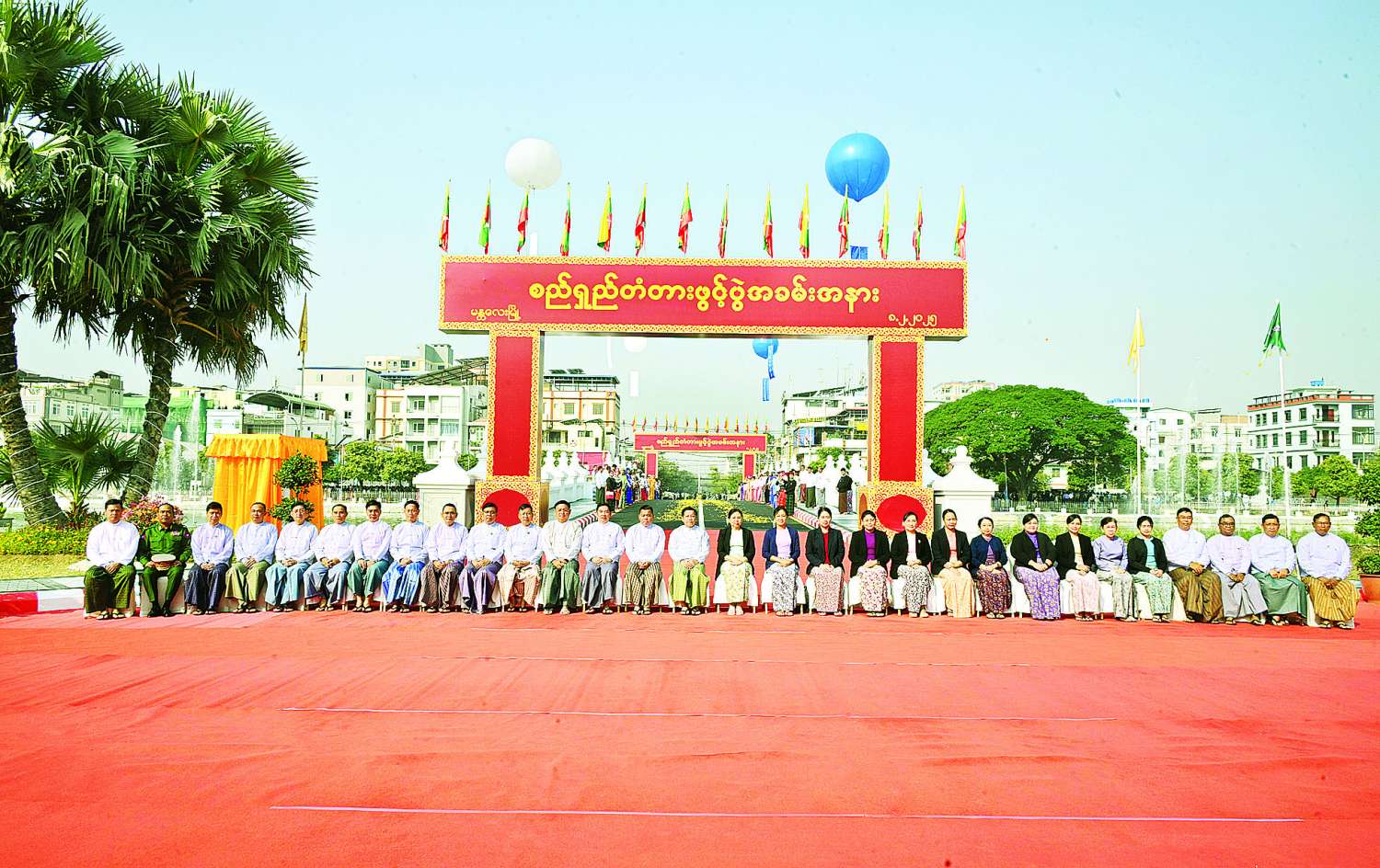 ယင်းနောက် နိုင်ငံတော်စီမံအုပ်ချုပ်ရေးကောင်စီဥက္ကဋ္ဌ နိုင်ငံတော်ဝန်ကြီးချုပ်နှင့် ဇနီး အခမ်းအနားတက်ရောက်လာကြသူများသည် စုပေါင်းမှတ်တမ်းတင်ဓာတ်ပုံ ရိုက်ကြသည်။