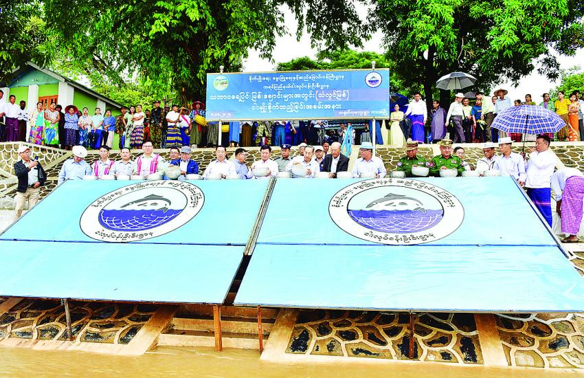 နိုင်ငံတော်စီမံအုပ်ချုပ်ရေးကောင်စီအဖွဲ့ဝင် မန်းငြိမ်မောင်၊ ခွန်စံလွင် သံလွင်မြစ်အတွင်း ငါးမျိုး စိုက်ထည့်၊ တောင်သူများထံ မြေဩဇာများ ထောက်ပံ့