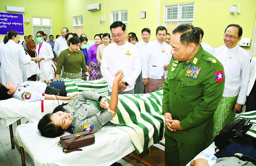 နိုင်ငံတော်စီမံအုပ်ချုပ်ရေးကောင်စီအဖွဲ့ဝင် ပြည်ထောင်စုဝန်ကြီး ဒုတိယဗိုလ်ချုပ်ကြီးရာပြည့် နှစ်(၆၀)ပြည့် မြန်မာနိုင်ငံရဲတပ်ဖွဲ့နေ့ကို ကြိုဆိုဂုဏ်ပြုသောအားဖြင့် စုပေါင်းသွေးလှူဒါန်းပွဲနှင့် ဆေးရုံသုံးပစ္စည်းများနှင့် ဆေးဝါးများပေးအပ်လှူဒါန်းပွဲသို့ တက်ရောက်