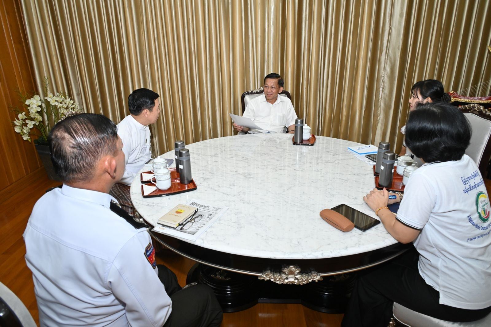 သန်းခေါင်စာရင်းကောက်ယူရေးအဖွဲ့က သန်းခေါင်စာရင်းမေးခွန်းများကို မေးမြန်းဖြည့်စွက်ကြရာ နိုင်ငံတော်စီမံအုပ်ချုပ်ရေးကောင်စီဥက္ကဋ္ဌ နိုင်ငံတော်ဝန်ကြီးချုပ်က ပြည့်ပြည့်စုံစုံ ဖြေကြားခဲ့သည်။