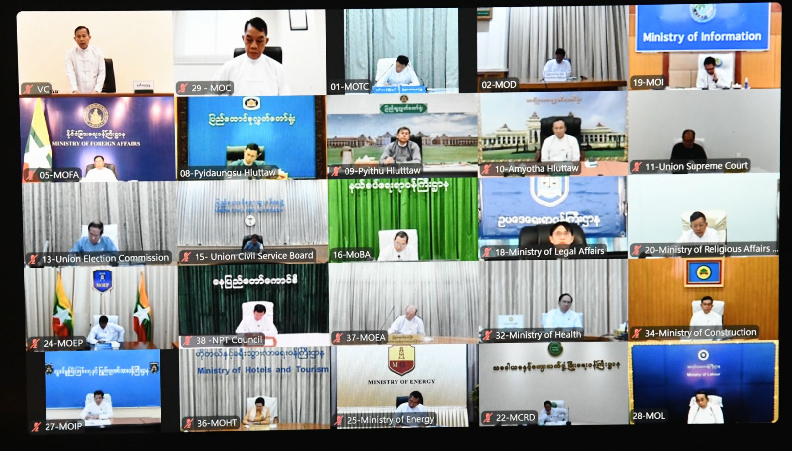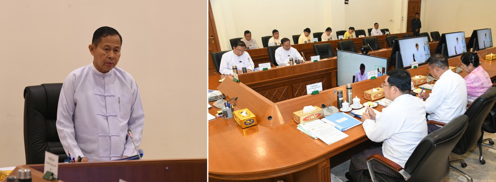 အစည်းအဝေးသို့ နိုင်ငံတော်စီမံအုပ်ချုပ်ရေးကောင်စီအဖွဲ့ဝင် ဗိုလ်ချုပ်ကြီး ညိုစော၊ ပြည်ထောင်စုဝန်ကြီး ဦးဝင်းရှိန်နှင့် ဒေါက်တာ မျိုးသိန်းကျော်၊ ပြည်ထောင်စုစာရင်းစစ်ချုပ် ဒေါက်တာ ခင်နိုင်ဦး၊ ဒုတိယဝန်ကြီး ဦးမင်းထွဋ်နှင့် တာဝန်ရှိသူများ တက်ရောက်ကြပြီး ပြည်ထောင်စုအဆင့်ပုဂ္ဂိုလ်များ၊ ပြည်ထောင်စုဝန်ကြီးများ၊ ဒုတိယဝန်ကြီးများနှင့် တာဝန်ရှိသူများက ဗီဒီယိုကွန်ဖရင့်ဖြင့် တက်ရောက်ကြသည်။
