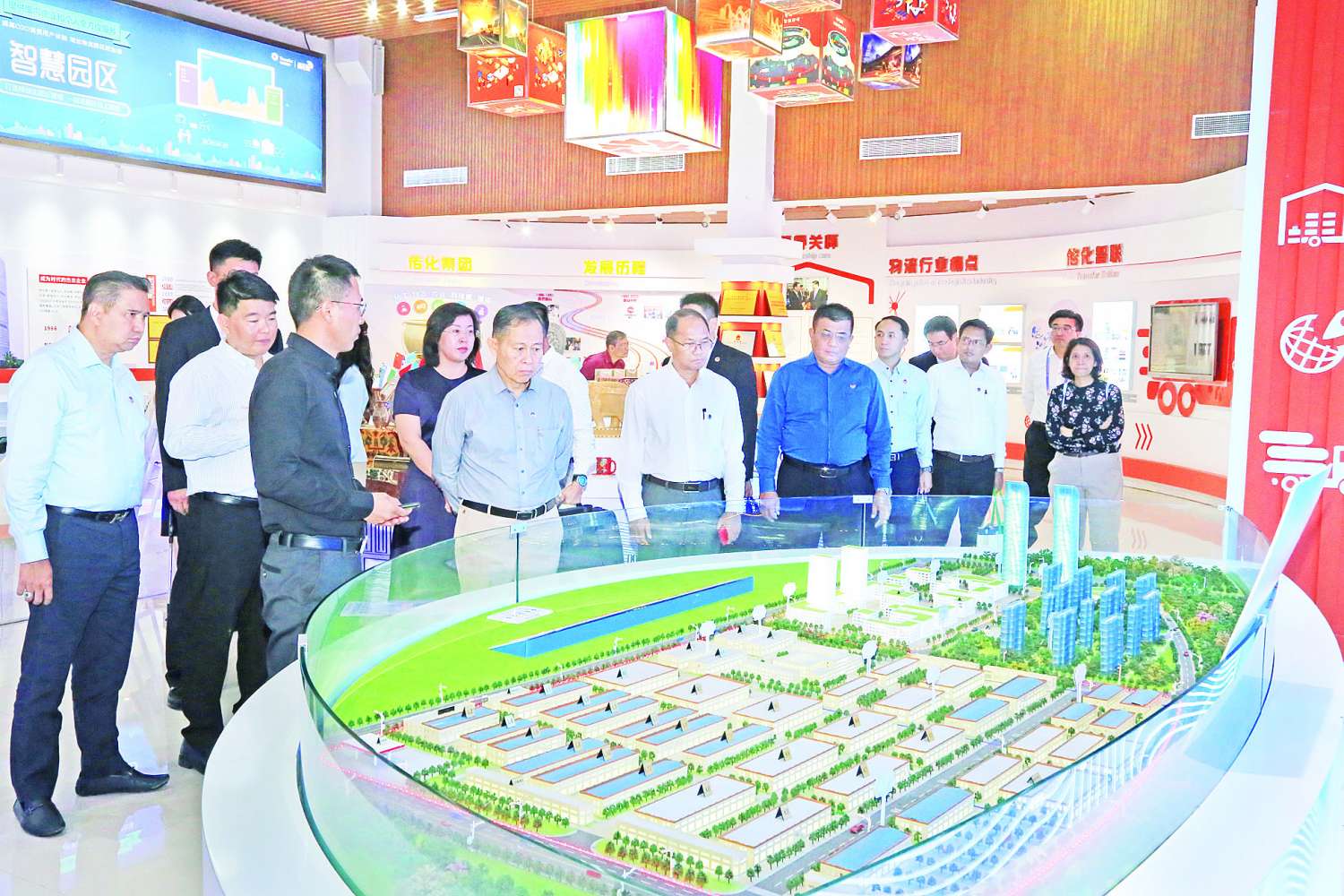 ထို့နောက် နိုင်ငံတော်စီမံအုပ်ချုပ်ရေးကောင်စီ ဒုတိယဥက္ကဋ္ဌ ဒုတိယဝန်ကြီးချုပ် ဦးဆောင်သော မြန်မာကိုယ်စားလှယ်အဖွဲ့သည် စင်တာအတွင်းလှည့်လည်ကြည့်ရှုလေ့လာကြရာ ရှန်ဟိုင်းပူးပေါင်းဆောင်ရွက်မှုအဖွဲ့ ဖွံ့ဖြိုးတိုးတက်ရေးဇုန် တရုတ်ကွန်မြူနစ်ပါတီ လုပ်ငန်းကော်မတီအဖွဲ့ဝင် မစ္စ ဖူကျုံဟွနှင့် တာဝန်ရှိသူများက စင်တာဆိုင်ရာအချက်အလက်များ၊ ဈေးကွက်ဗဟိုပြုစနစ်ဖြင့် ရင်းနှီးမြှုပ်နှံ၍ တည်ဆောက်လည်ပတ်နေမှု၊ SCO အဖွဲ့ဝင် တစ်နိုင်ငံချင်းစီ၏ ယဉ်ကျေးမှု၊ စီးပွားရေးနှင့် ကုန်သွယ်ရေးပြပွဲနေရာများ ထောက်ပံ့ခြင်းဆောင်ရွက်နေမှုတို့ကို ရှင်းလင်းတင်ပြကြရာ နိုင်ငံတော်စီမံအုပ်ချုပ်ရေးကောင်စီ ဒုတိယဥက္ကဋ္ဌ ဒုတိယဝန်ကြီးချုပ်က သိရှိလိုသည်များကို မေးမြန်းဆွေးနွေးသည်။