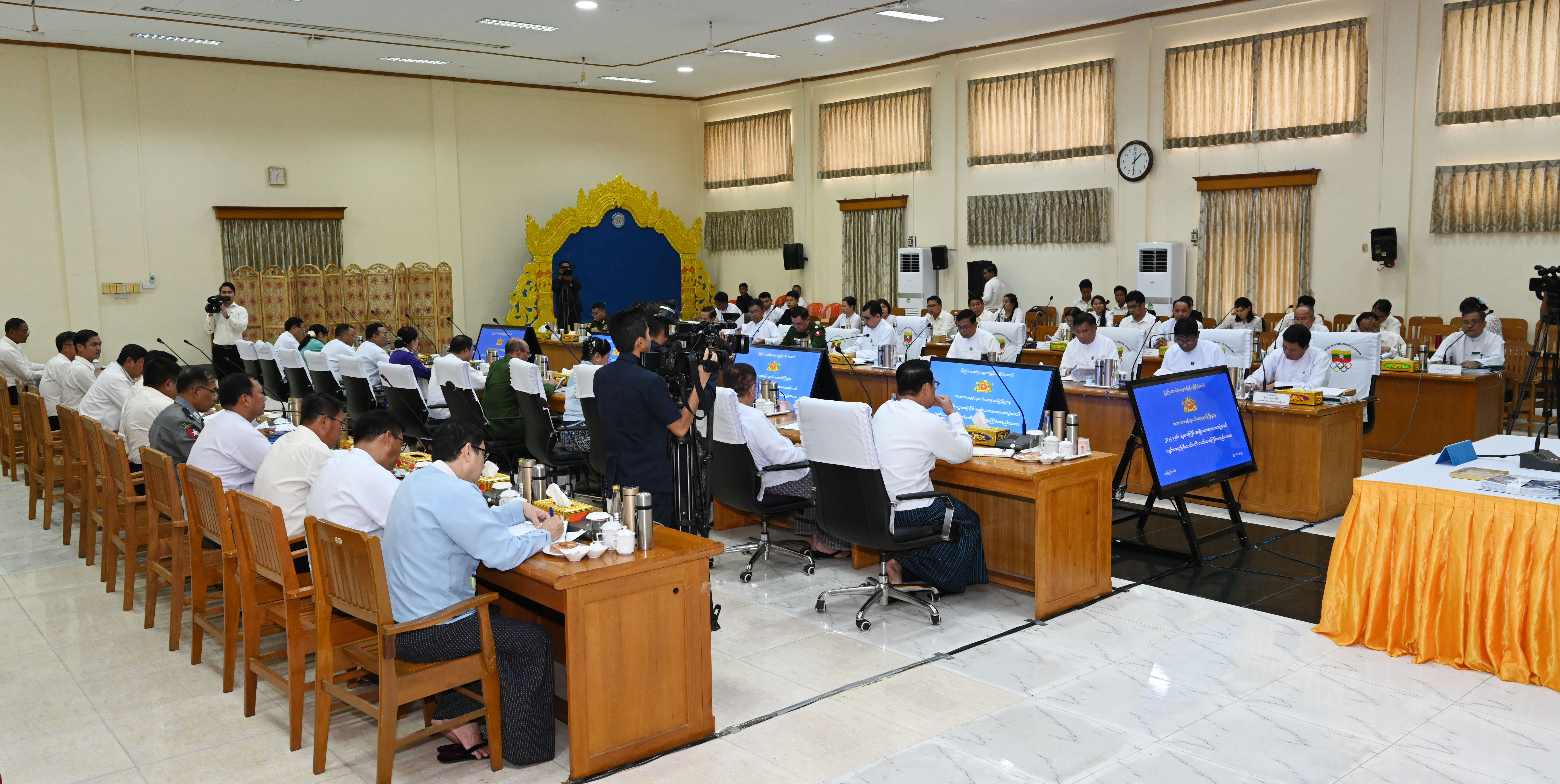 ဆက်လက်၍ ပို့ဆောင်ဆက်သွယ်ရေးဆပ်ကော်မတီ၊ လုံခြုံရေးဆပ်ကော်မတီ၊ ဘဏ္ဍာရေးနှင့် ဆုချီးမြှင့်ရေးဆပ်ကော်မတီ၊ သတင်းထုတ်ပြန်ရေးနှင့် မှတ်တမ်းတင်ရေးဆပ်ကော်မတီ၊ ကျန်းမာရေးဆပ်ကော်မတီ၊ ဖိတ်ကြားရေးနှင့် ကြိုဆိုနေရာချထားရေးဆပ်ကော်မတီ၊ အခမ်းအနား ပြင်ဆင်ရေးဆပ်ကော်မတီ၊ စာရင်းစစ်ဆေးရေးဆပ်ကော်မတီ၊ ပြိုင်ပွဲကျင်းပရေးနှင့်နည်းစနစ်ဆပ်ကော်မတီ၊ တည်းခိုနေထိုင်ရေးနှင့် ဧည့်ခံကျွေးမွေးရေးဆပ်ကော်မတီနှင့် ခုံသမာဓိဆပ်ကော်မတီတို့မှ ဥက္ကဋ္ဌများဖြစ်ကြသည့် ဒုတိယဝန်ကြီးများ၊ ဒုတိယ စာရင်း စစ်ချုပ်နှင့် ညွှန်ကြားရေးမှူးချုပ်တို့က ပဉ္စမအကြိမ် အမျိုးသားအားကစားပွဲတော် အခမ်းအနား အောင်မြင်စွာ ကျင်းပနိုင်ရေးအတွက် သက်ဆိုင်ရာကဏ္ဍများအလိုက် လုပ်ငန်းဆောင်ရွက်ချက်များ၊ ဆောင်ရွက်ပြီးစီးမှုနှင့် ဆက်လက်ဆောင်ရွက်သွားကြမည့် အစီအမံများကို ရှင်းလင်း ဆွေးနွေးတင်ပြကြသည်။