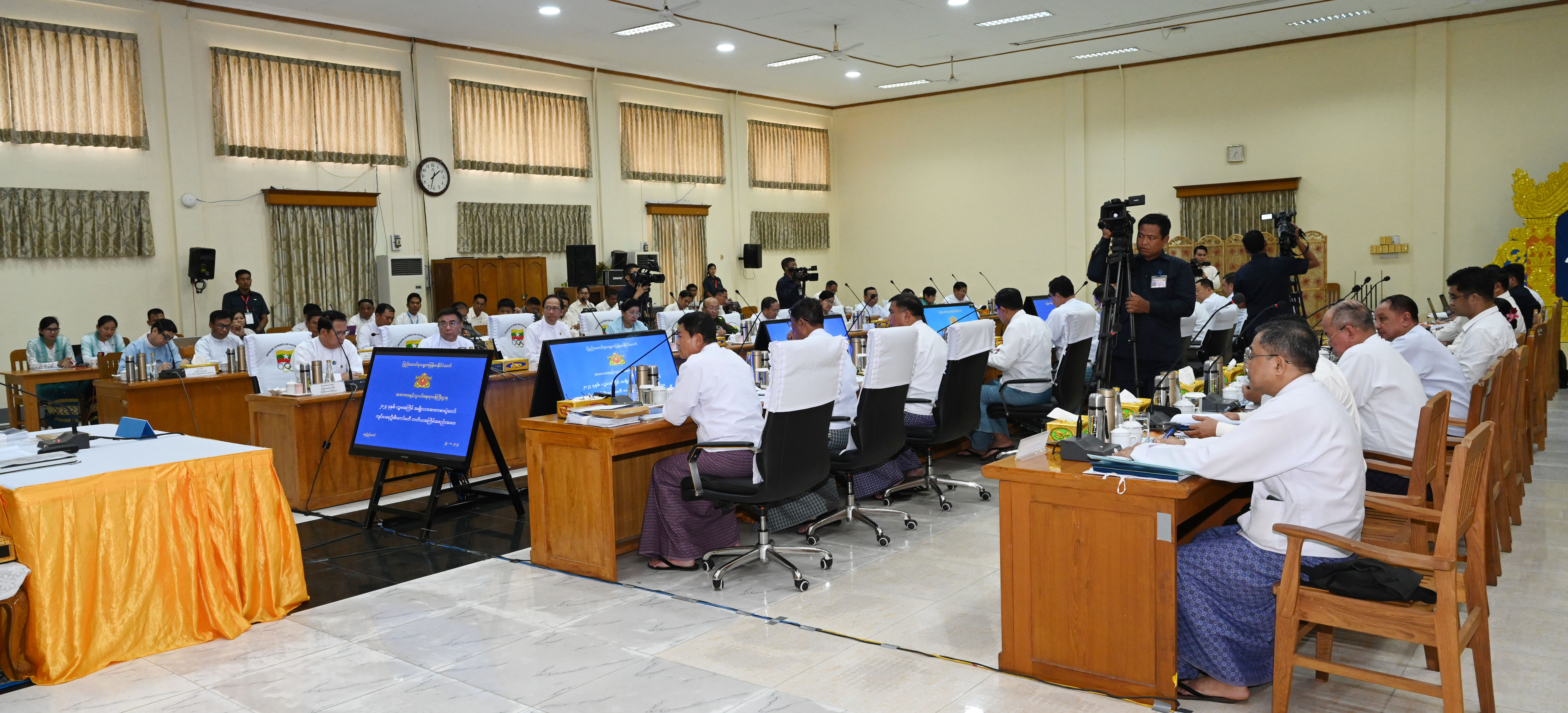 ယင်းနောက် ကျင်းပရေးကော်မတီဝင်များ ဖြစ်ကြသည့် ပြည်ထောင်စုဝန်ကြီးများ၊ ပြည်ထောင်စုစာရင်းစစ်ချုပ်၊ ဒုတိယဝန်ကြီးနှင့် နေပြည်တော်ကောင်စီဝင်တို့က ပဉ္စမအကြိမ် အမျိုးသားအားကစားပွဲတော် ဖွင့်ပွဲ/ ပိတ်ပွဲ အခမ်းအနားများကို ခေတ်ကာလနှင့်လျော်ညီစွာ နိုင်ငံတော်အဆင့် ခမ်းနားထည်ဝါစွာ ကျင်းပနိုင်ရေးအတွက် ဆောင်ရွက်သွားမည့် အစီအစဉ် လျာထားချက်များနှင့် သက်ဆိုင်ရာကဏ္ဍအလိုက် ပြင်ဆင်ဆောင်ရွက်ထားရှိမှု အခြေအနေများကို ရှင်းလင်းတင်ပြကြသည်။