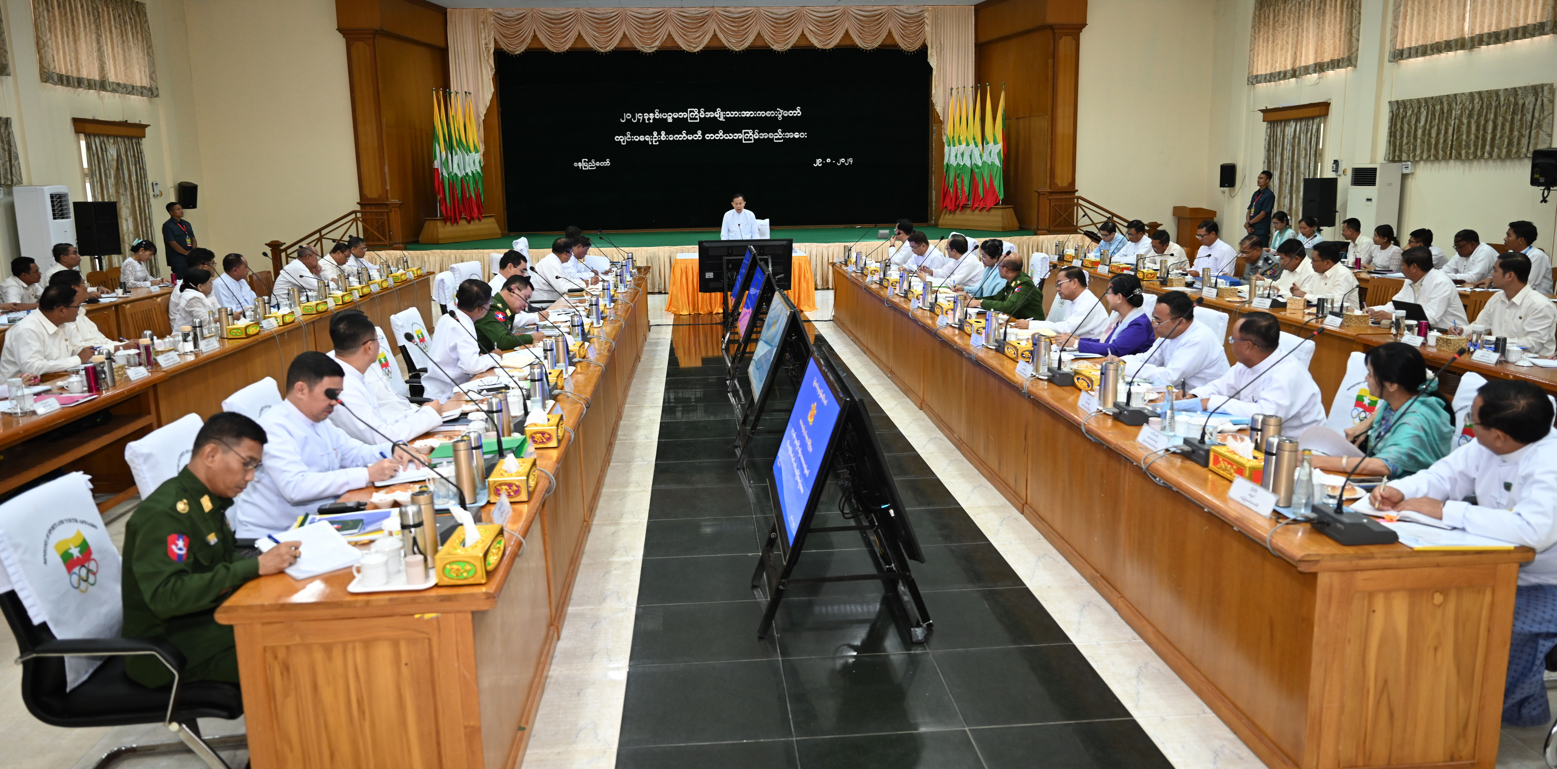 နိုင်ငံတော်စီမံအုပ်ချုပ်ရေးကောင်စီ ဒုတိယဥက္ကဋ္ဌ ဒုတိယဝန်ကြီးချုပ် ဒုတိယဗိုလ်ချုပ်မှူးကြီးစိုးဝင်း ၂၀၂၄ ခုနှစ် ပဉ္စမအကြိမ် အမျိုးသားအားကစားပွဲတော်ကျင်းပရေးဦးစီးကော်မတီ တတိယအကြိမ်အစည်းအဝေးသို့ တက်ရောက်အမှာစကားပြောကြား