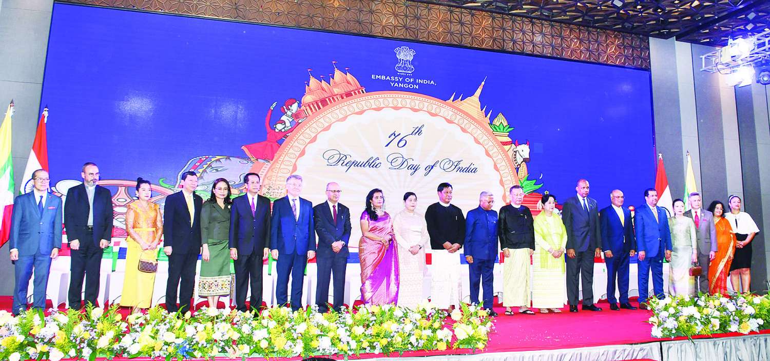 နိုင်ငံတော်စီမံအုပ်ချုပ်ရေးကောင်စီအဖွဲ့ဝင် ဒုတိယဝန်ကြီးချုပ်နှင့် နိုင်ငံတော်ဝန်ကြီးချုပ်ရုံး ပြည်ထောင်စုဝန်ကြီး ဗိုလ်ချုပ်ကြီး တင်အောင်စန်း အိန္ဒိယသမ္မတနိုင်ငံ၏ (၇၆)နှစ်မြောက် အမျိုးသားနေ့အထိမ်းအမှတ် ဧည့်ခံပွဲအခမ်းအနားသို့ တက်ရောက်